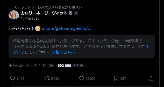 | … | 635無題Name名無し 25/12/21(日)11:02:26 IP:59.132.*(au-net.ne.jp)No.2684092そうだねx17>https://x.com/keithedwards/status/2002430370206433384 |
