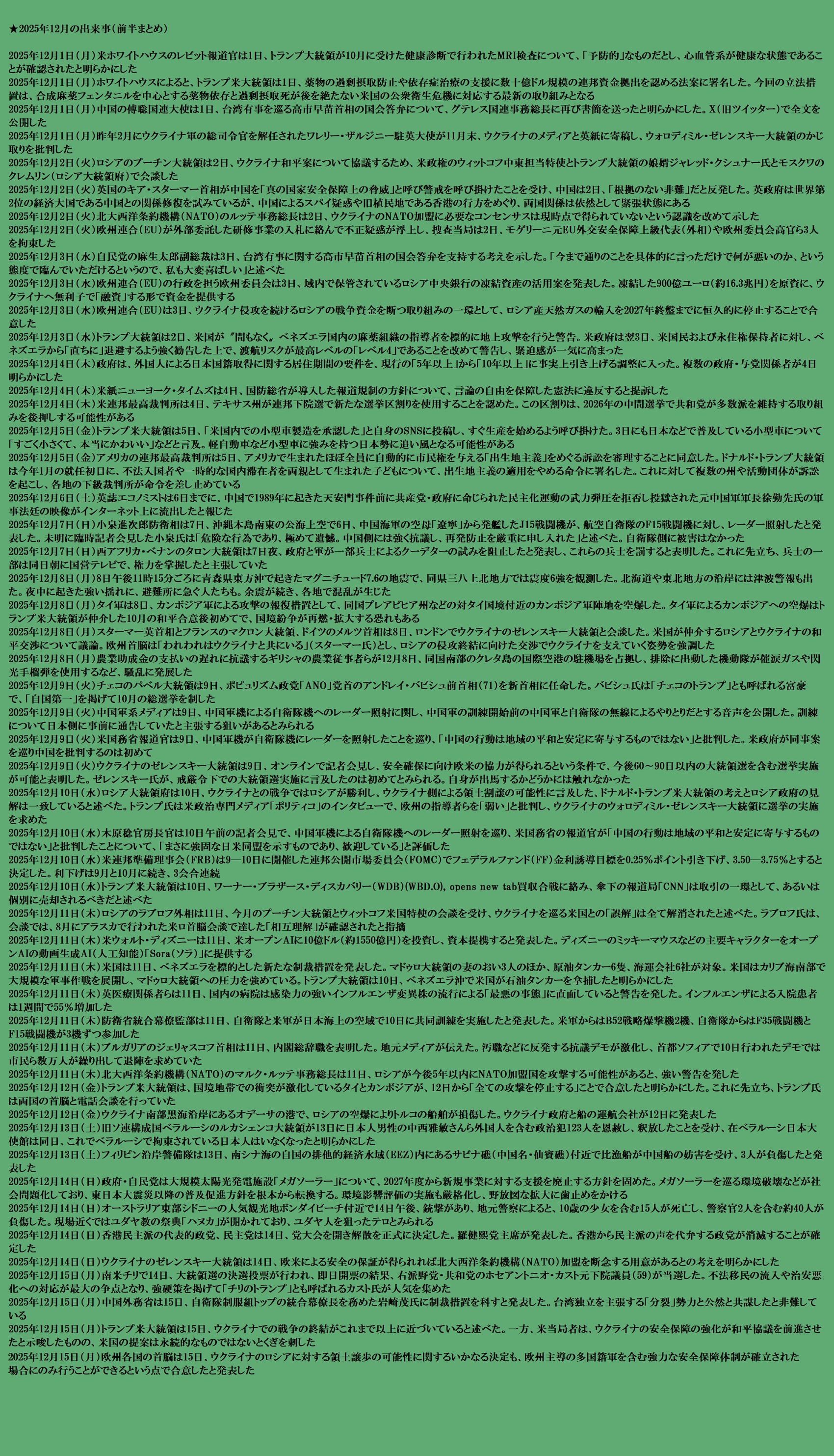 | … | 18無題Name名無し 25/12/24(水)20:46:36 IP:175.177.*(itscom.jp)No.2684781+ 1766576796149.jpg-(2330305 B) ★2025年12月の出来事(前半)まとめ |