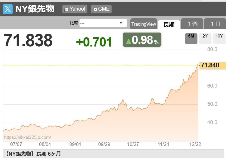 | … | 35無題Name名無し 25/12/24(水)22:39:22 IP:106.150.*(dion.ne.jp)No.2684802そうだねx2 1766583562647.jpg-(83047 B) 金現物、4500ドル初めて突破 銀・プラチナも最高値更新 |