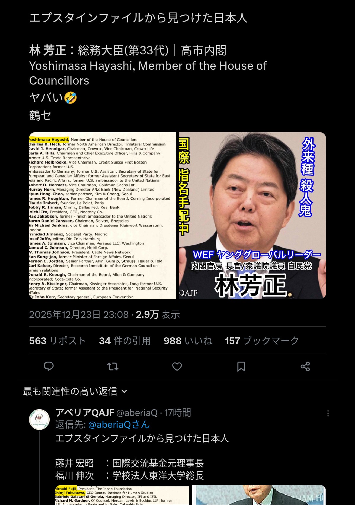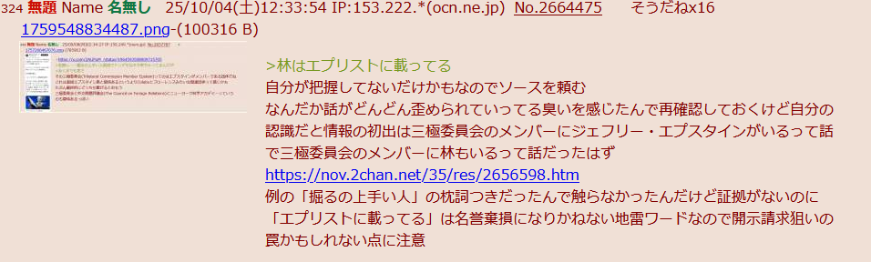 | … | 75無題Name名無し 25/12/25(木)06:39:27 IP:106.150.*(dion.ne.jp)No.2684844そうだねx3 1766612367104.jpg-(56901 B) >三極委員会のリストはエプスタイン・ファイルとは別物 |