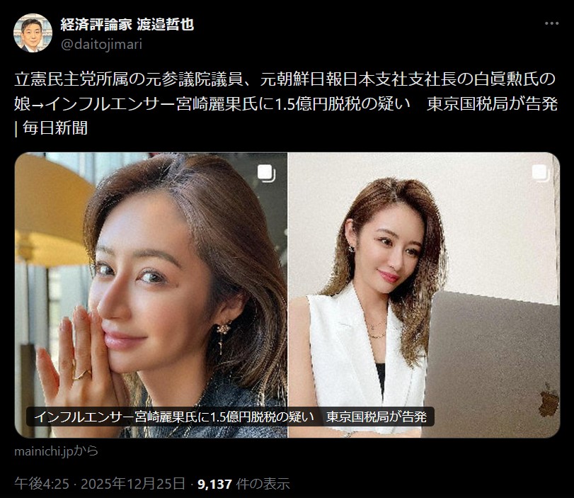 | … | 93無題Name名無し 25/12/25(木)08:31:02 IP:106.154.*(au-net.ne.jp)No.2684864そうだねx2 1766619062706.jpg-(459471 B) https://news.yahoo.co.jp/articles/3df5f7c9b205a709f81690dbdd23524870389188 |