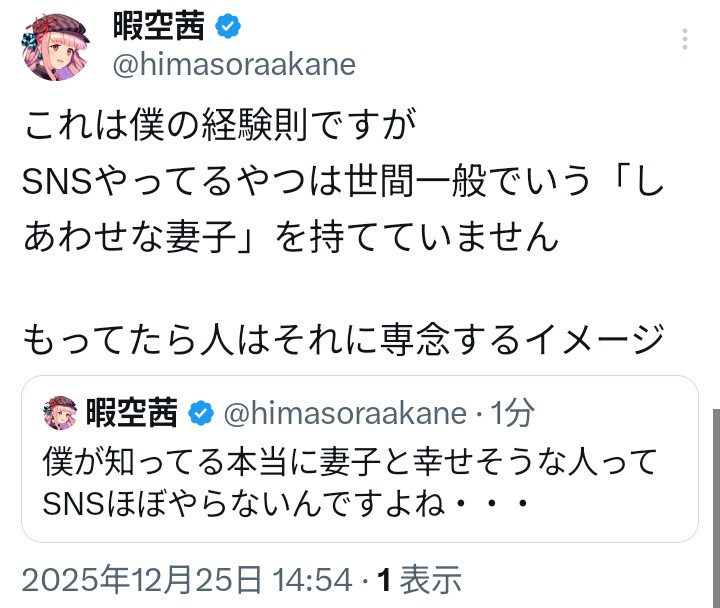 | … | 10無題Name名無し 25/12/24(水)20:43:18 IP:175.177.*(itscom.jp)No.2684773そうだねx1 1766576598063.png-(3050002 B) 暇空茜さん関連まとめ |