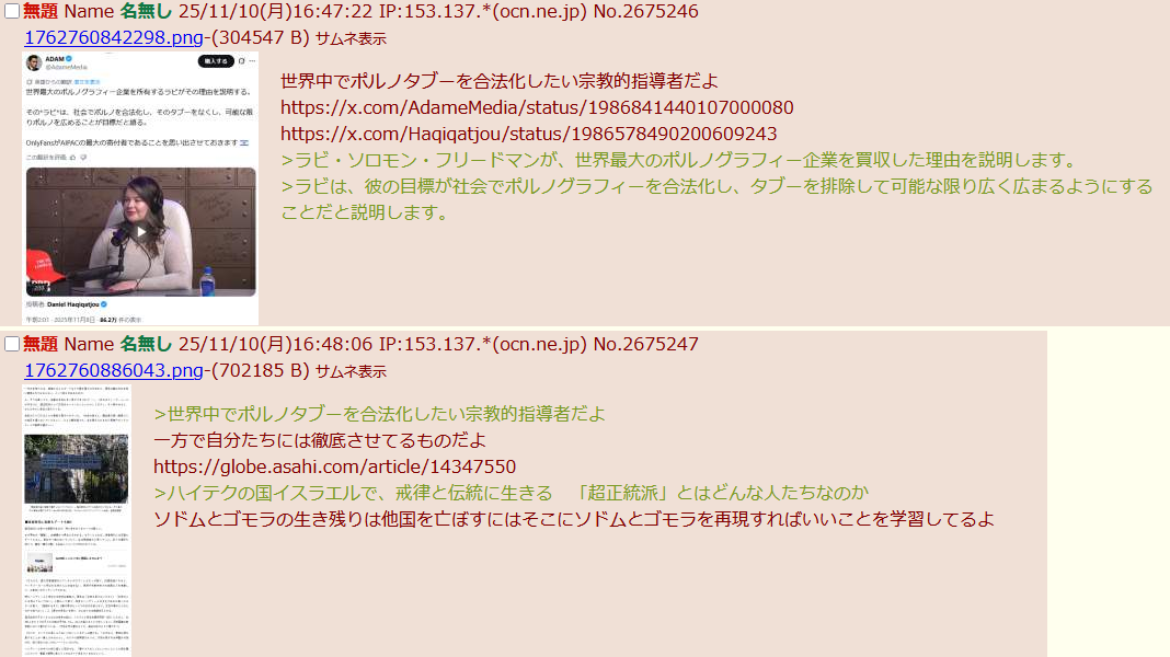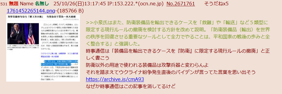 | … | 2無題Name名無し 25/12/24(水)20:38:56 IP:175.177.*(itscom.jp)No.2684765+▼監査結果の中継アーカイブ |