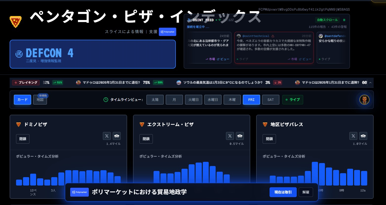 | … | 50無題Name名無し 26/01/03(土)16:14:50 IP:106.150.*(dion.ne.jp)No.2686160そうだねx1 1767424490099.jpg-(203834 B) 波乱の予兆はワシントンDCのピザの売り上げにあったッ… |