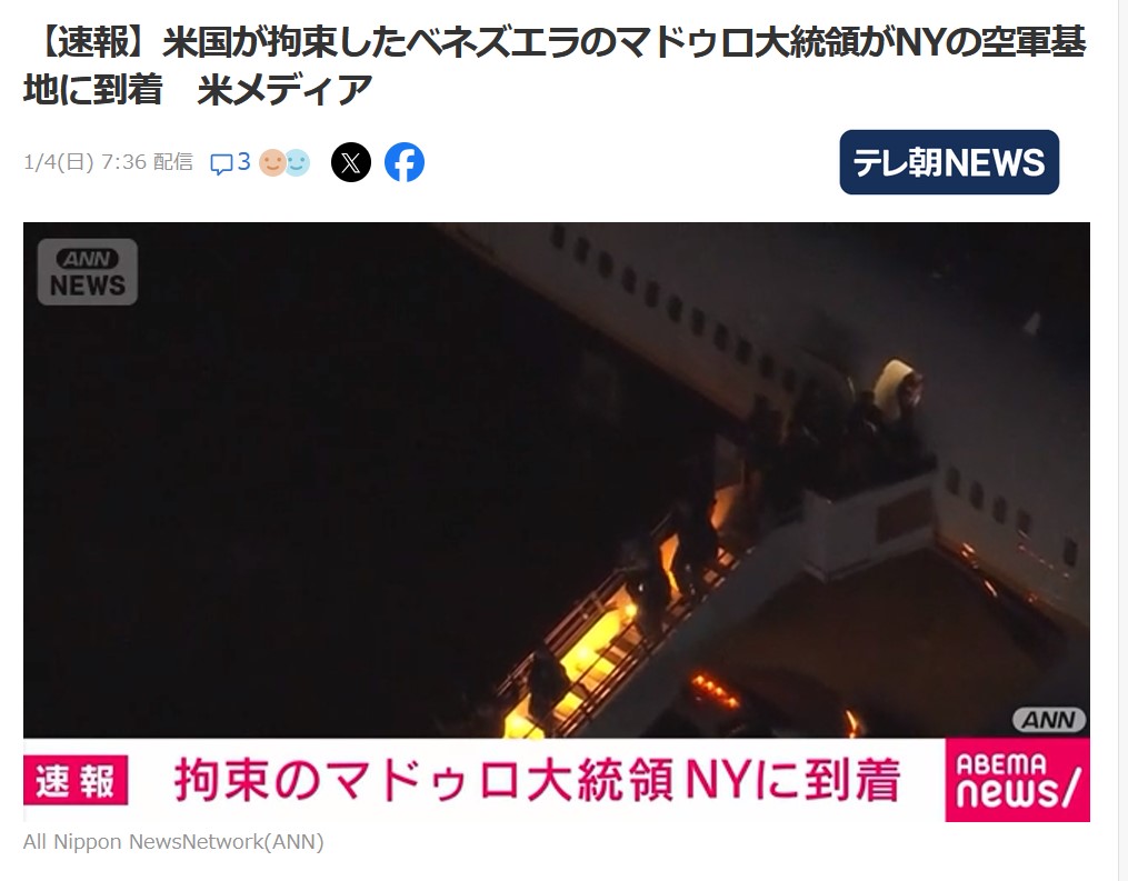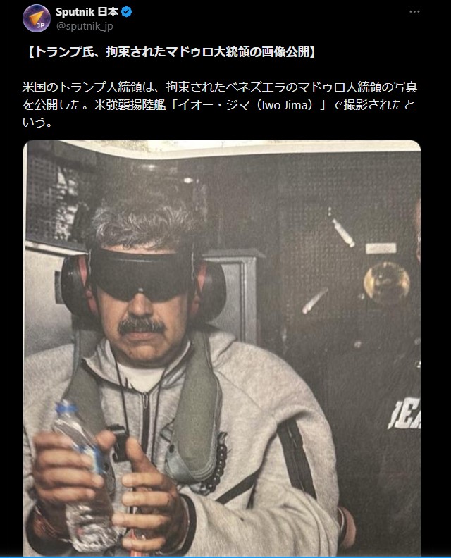 | … | 62無題Name名無し 26/01/03(土)18:40:14 IP:106.150.*(dion.ne.jp)No.2686176そうだねx7 1767433214175.jpg-(72519 B) >ベネズエラのマドゥロ大統領拘束したみたいね |