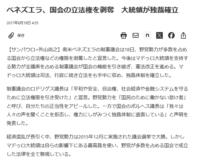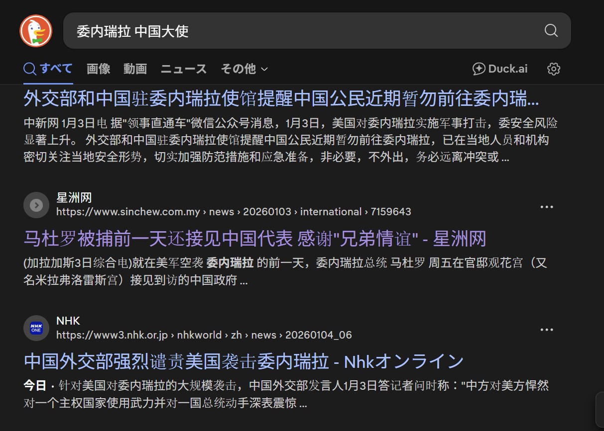 | … | 58無題Name名無し 26/01/03(土)18:32:50 IP:106.150.*(dion.ne.jp)No.2686172+ 1767432770083.png-(1099975 B) ベネズエラが非常事態宣言、米国が「軍事侵略」 |