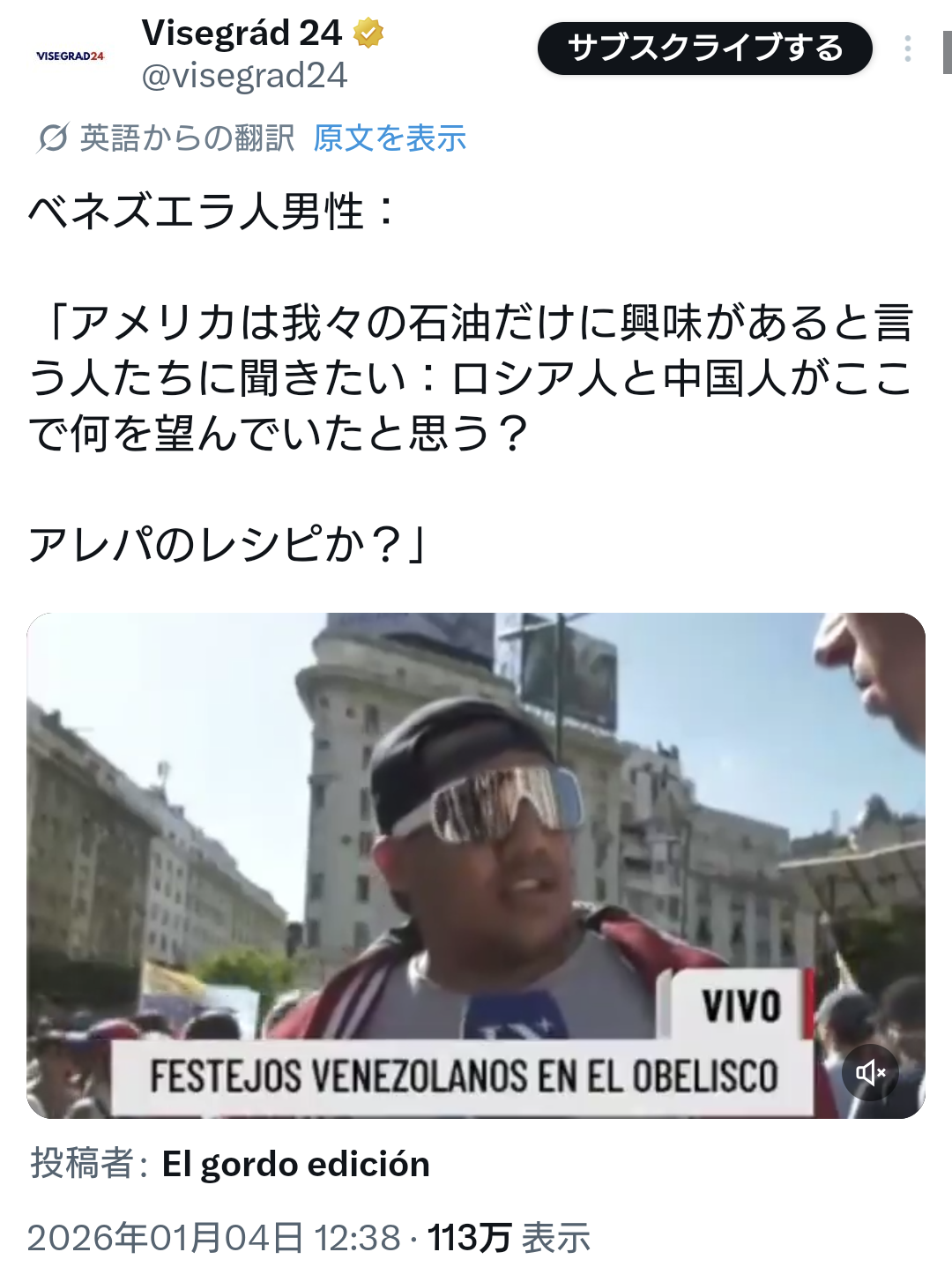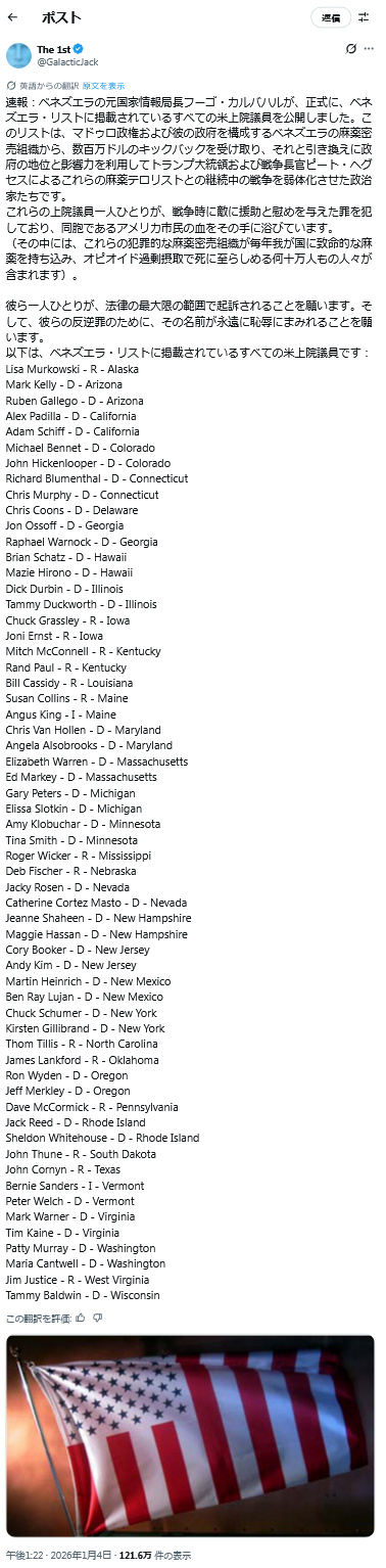 | … | 619無題Name名無し 26/01/07(水)07:06:59 IP:106.150.*(dion.ne.jp)No.2687041+ 1767737219279.jpg-(107335 B) その他ニュース(ベネズエラ) |