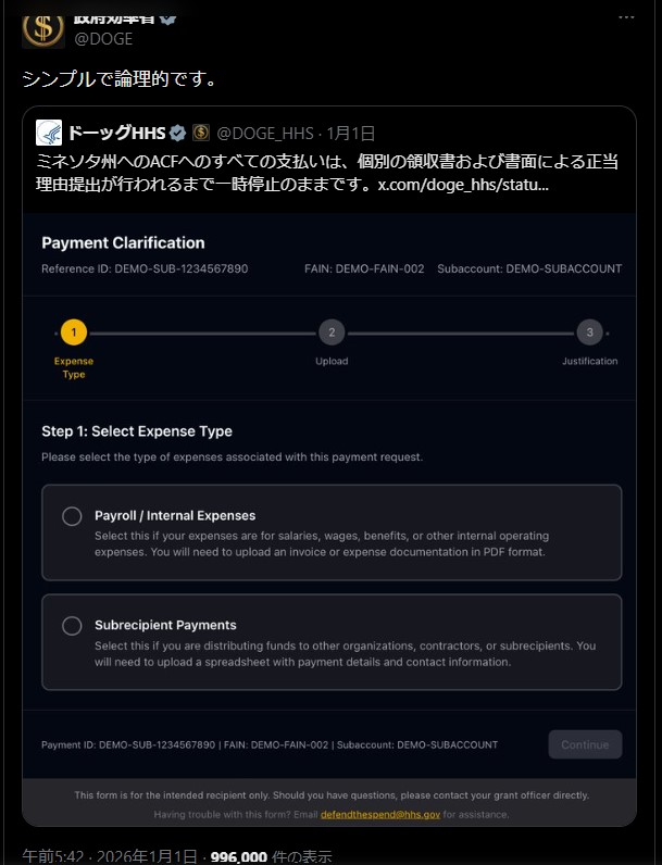 | … | 29無題Name名無し 26/01/03(土)13:25:52 IP:106.150.*(dion.ne.jp)No.2686139そうだねx4 1767414352318.png-(736884 B) 2012年のHHS監査で、ミネソタ州への不適切な保育金が1,600万ドル見つかった後も何百万ドルもの資金送付が判明(英語抜粋) |
