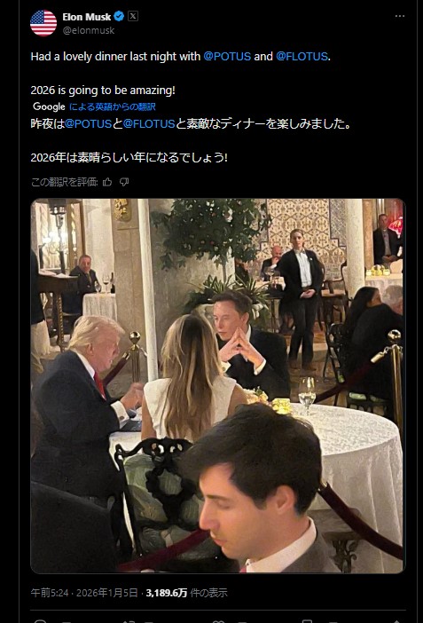 | … | 618無題Name名無し 26/01/07(水)06:59:44 IP:106.150.*(dion.ne.jp)No.2687040+ 1767736784594.jpg-(108819 B) マスク氏のxAI、約200億ドルの調達完了−エヌビディアなど出資 |