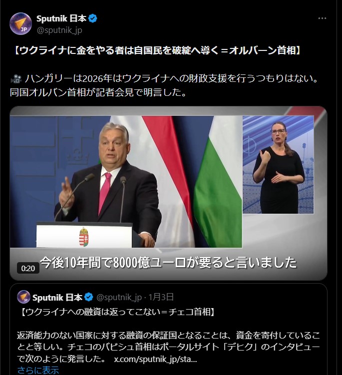 | … | 623無題Name名無し 26/01/07(水)08:05:30 IP:49.109.*(spmode.ne.jp)No.2687045そうだねx2>スターマー:イギリスとフランスは停戦後のウクライナ全土に軍事拠点を建設する予定(ロシア語) |