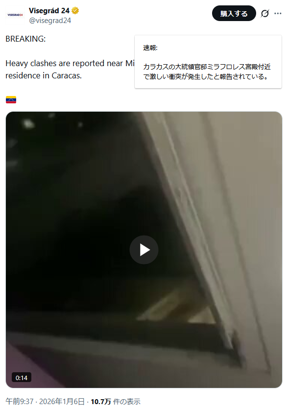 | … | 91無題Name名無し 26/01/03(土)20:04:40 IP:153.232.*(dti.ne.jp)No.2686205そうだねx1>>首都カラカスであった複数の爆発を受け、ベネズエラ政府は3日未明に声明を出し、米国による「軍事的な侵略」を拒否すると表明した。マドゥロ大統領は非常事態宣言を発令し、軍隊の動員を命じたという。ロイター通信が伝えた。 |