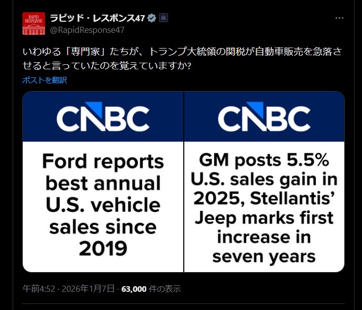 | … | 631無題Name名無し 26/01/07(水)09:52:38 IP:106.150.*(dion.ne.jp)No.2687053そうだねx1 1767747158132.jpg-(98845 B) メリケンの自動車販売が増加 |