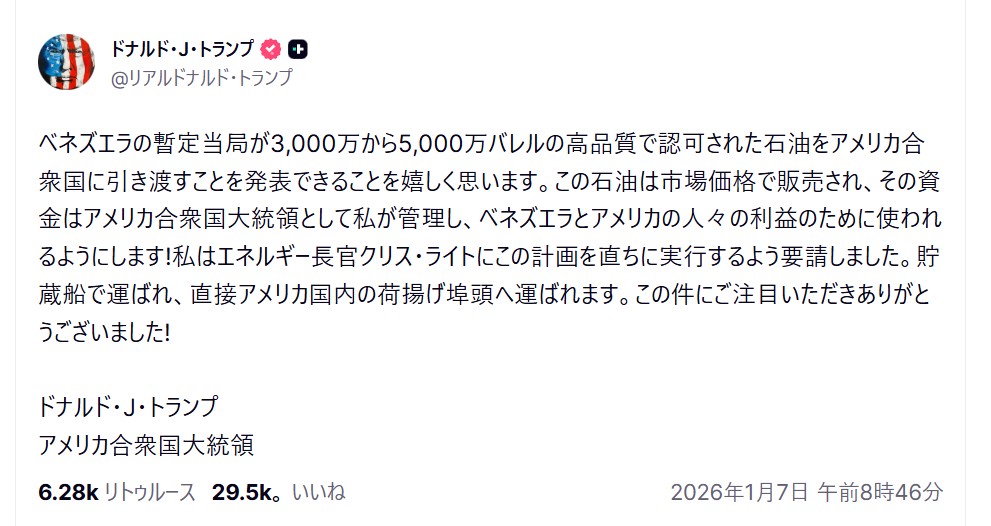 | … | 632無題Name名無し 26/01/07(水)09:55:57 IP:106.150.*(dion.ne.jp)No.2687054+ 1767747357609.jpg-(125742 B) ベネズエラの暫定政府がメリケンへの石油引き渡しを決定 |