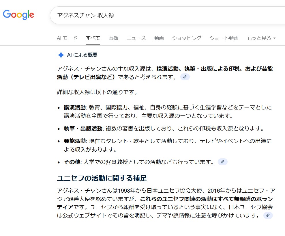 | … | 644無題Name名無し 26/01/07(水)10:58:32 IP:106.150.*(dion.ne.jp)No.2687066そうだねx1 1767751112436.jpg-(173554 B) >ユニセフから報酬を受け取っているという事実はなく、日本ユニセフ協会は公式ウェブサイトでその旨を明記し、デマや誤情報に注意を呼びかけています。 |