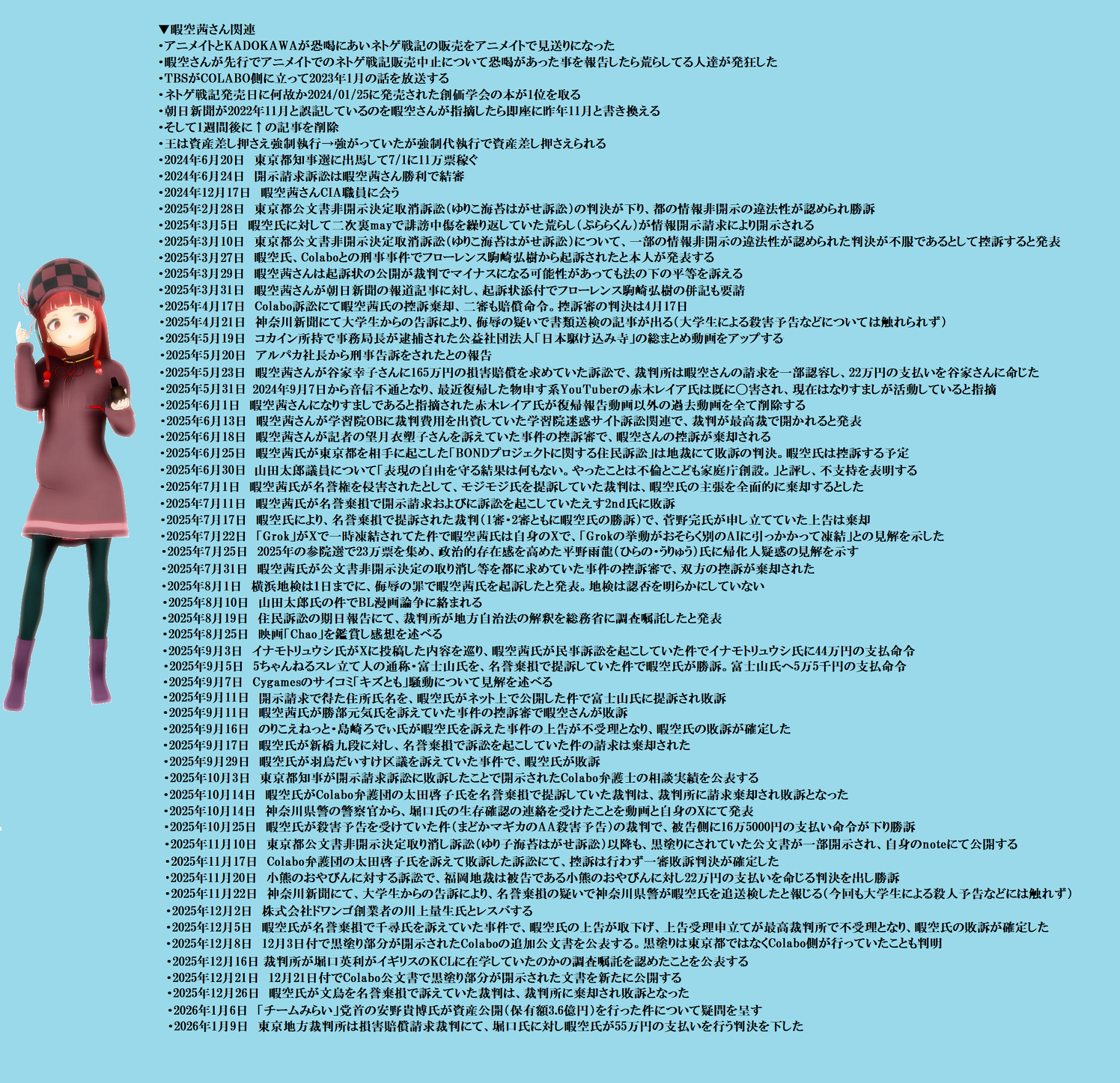 | … | 10無題Name名無し 26/01/10(土)12:14:06 IP:175.177.*(itscom.jp)No.2687799そうだねx2 1768014846675.png-(2947044 B) 暇空茜さん関連まとめ |