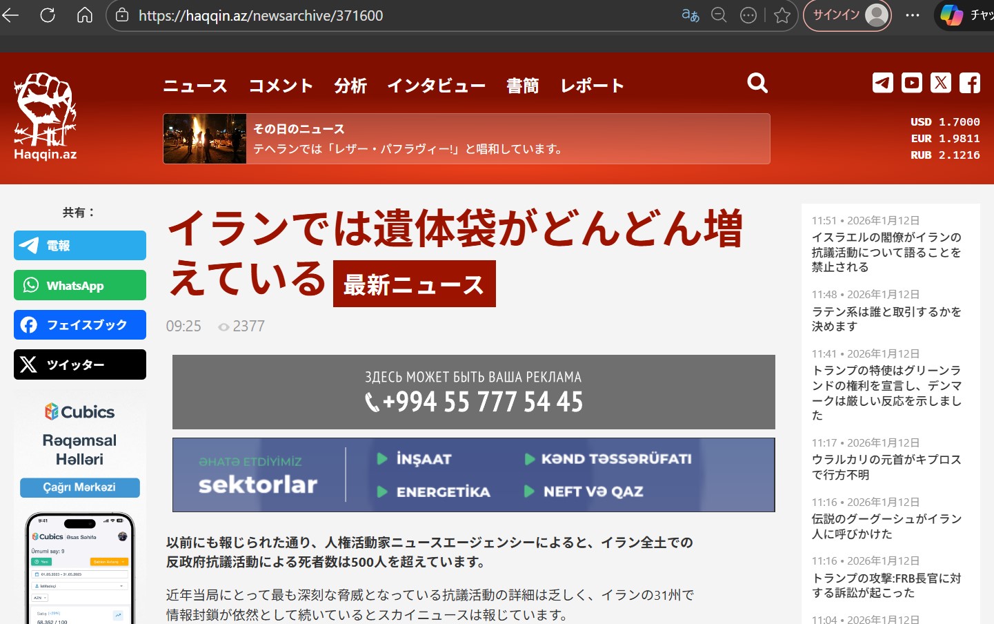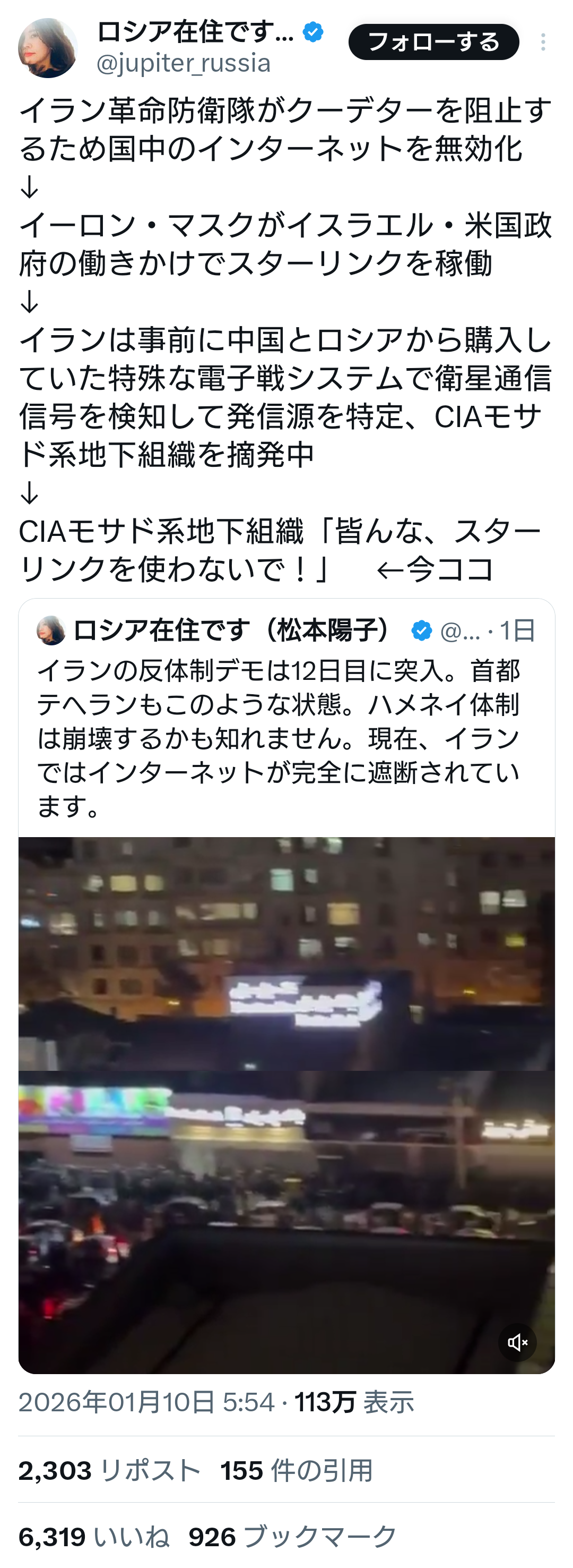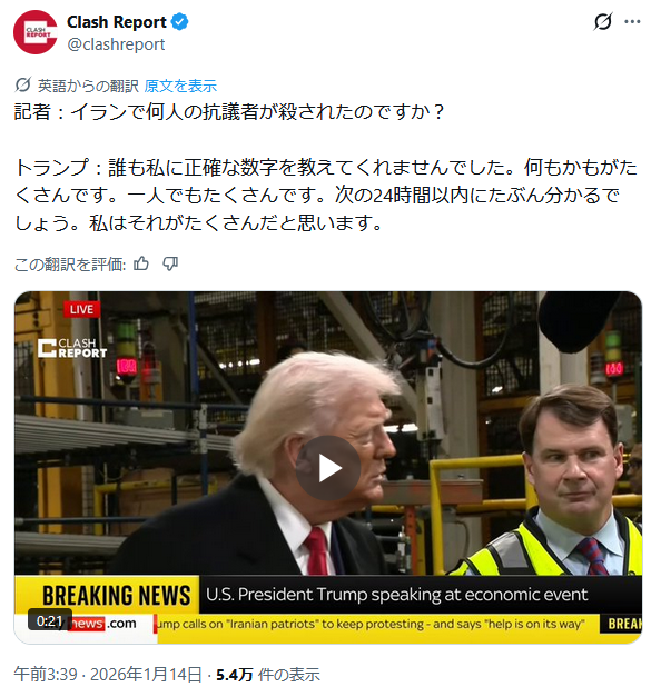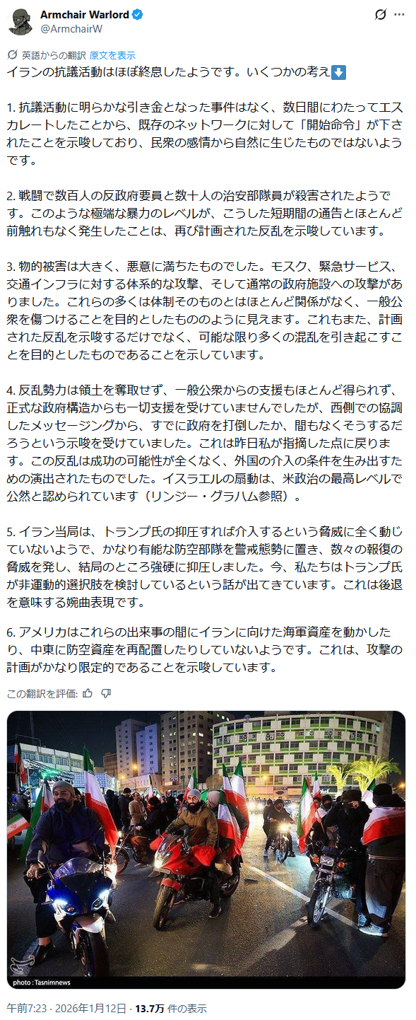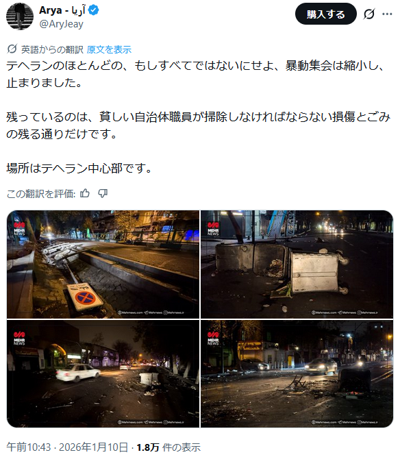 | … | 47無題Name名無し 26/01/10(土)14:02:37 IP:150.249.*(nuro.jp)No.2687840そうだねx8今のイラン何が起きてるんだろう? |