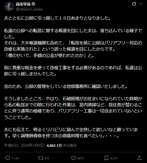 | … | 951無題Name名無し 26/01/15(木)19:21:48 IP:119.238.*(mesh.ad.jp)No.2689157そうだねx6>高市さんが総理になってなかったら話はお流れになってたってことか……色々酷いな |