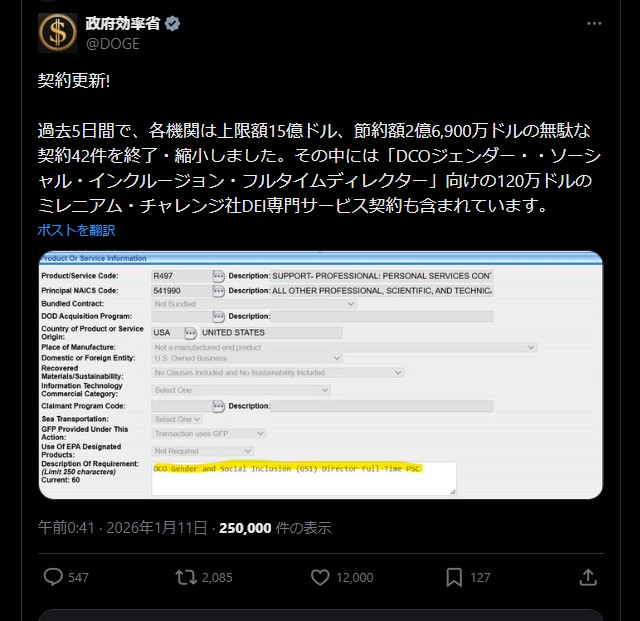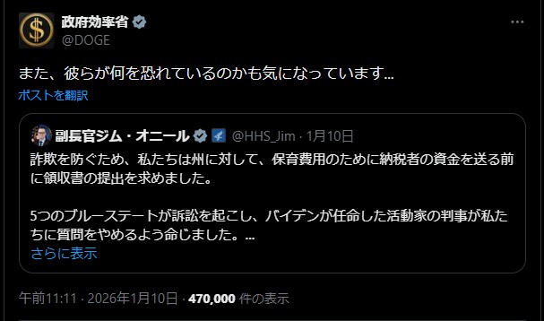 | … | 971無題Name名無し 26/01/15(木)20:25:03 IP:106.150.*(dion.ne.jp)No.2689181+ 1768476303591.png-(974355 B) 米政府、「聖域都市」含む州への助成金打ち切りへ トランプ氏方針表明 |