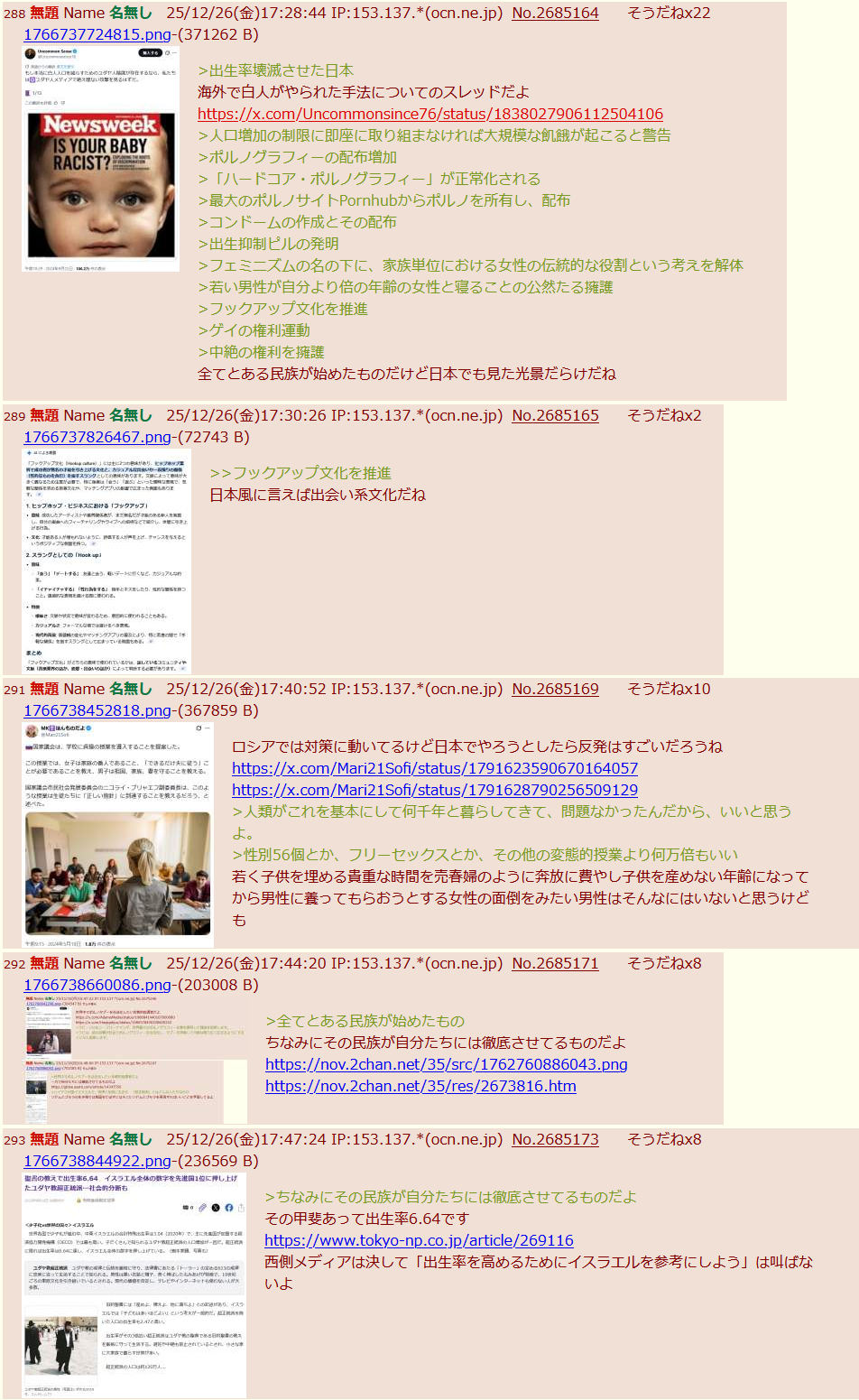| … | 5無題Name名無し 26/01/10(土)12:11:08 IP:175.177.*(itscom.jp)No.2687790そうだねx1▼よく行われる敵を衰退させる方法(要約)v20230522 |