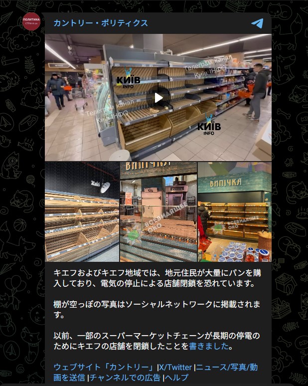 | … | 79無題Name名無し 26/01/10(土)17:33:39 IP:106.150.*(dion.ne.jp)No.2687876そうだねx2 1768034019970.png-(632799 B) キーウ市長、一時避難を勧告 集合住宅の半数で暖房停止 共同 |