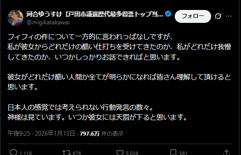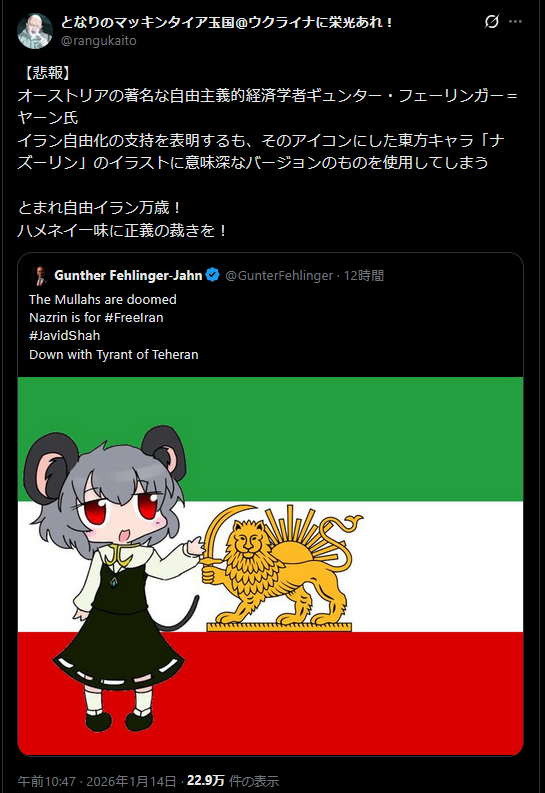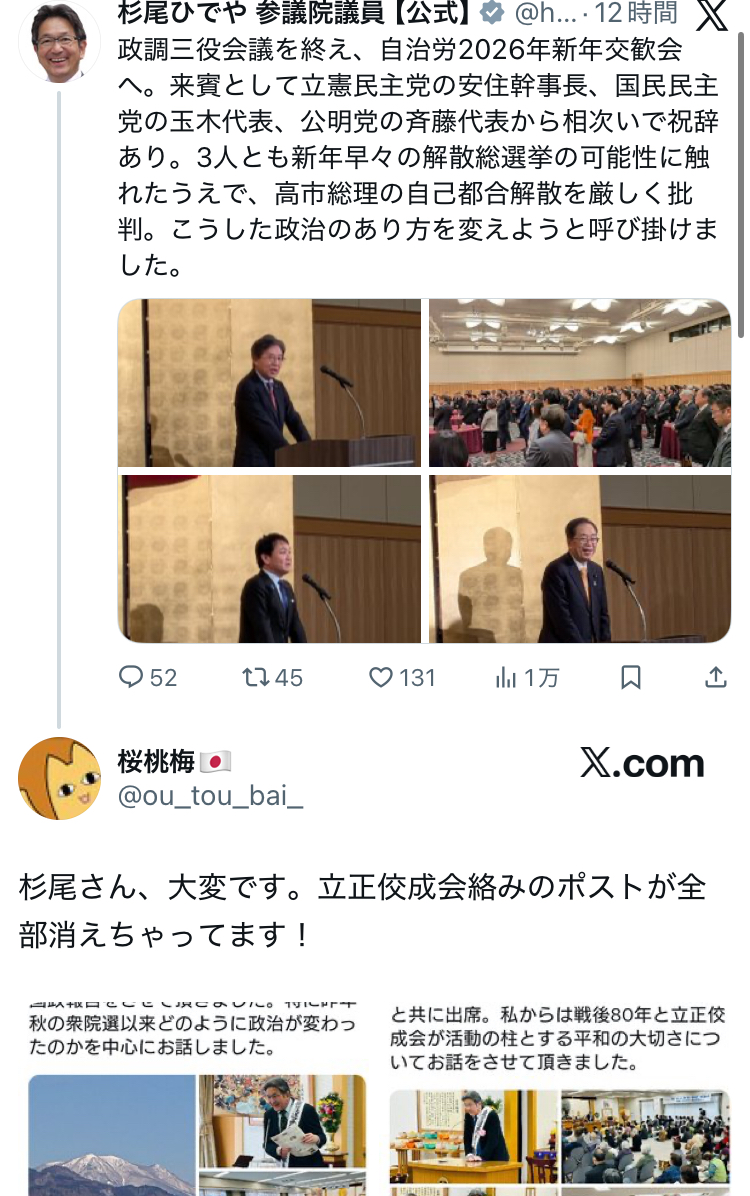 | … | 950無題Name名無し 26/01/15(木)19:15:54 IP:182.249.*(au-net.ne.jp)No.2689156そうだねx11 1768472154989.png-(166086 B) https://x.com/himasoraakane/status/2011718350016299230 |