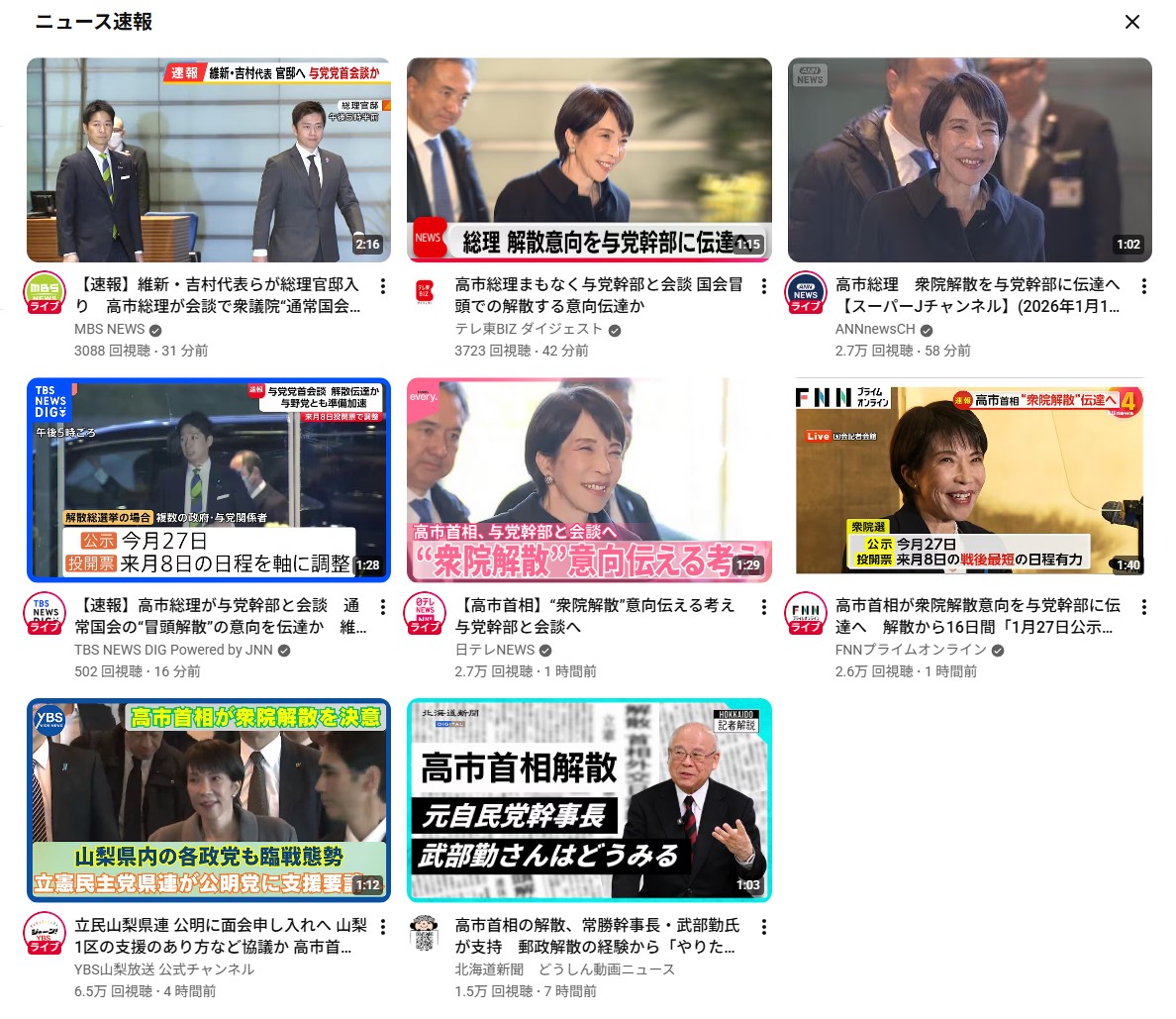 | … | 929無題Name名無し 26/01/15(木)18:29:44 IP:182.169.*(so-net.ne.jp)No.2689128そうだねx14テレビがこぞって解散を批判してる。 |