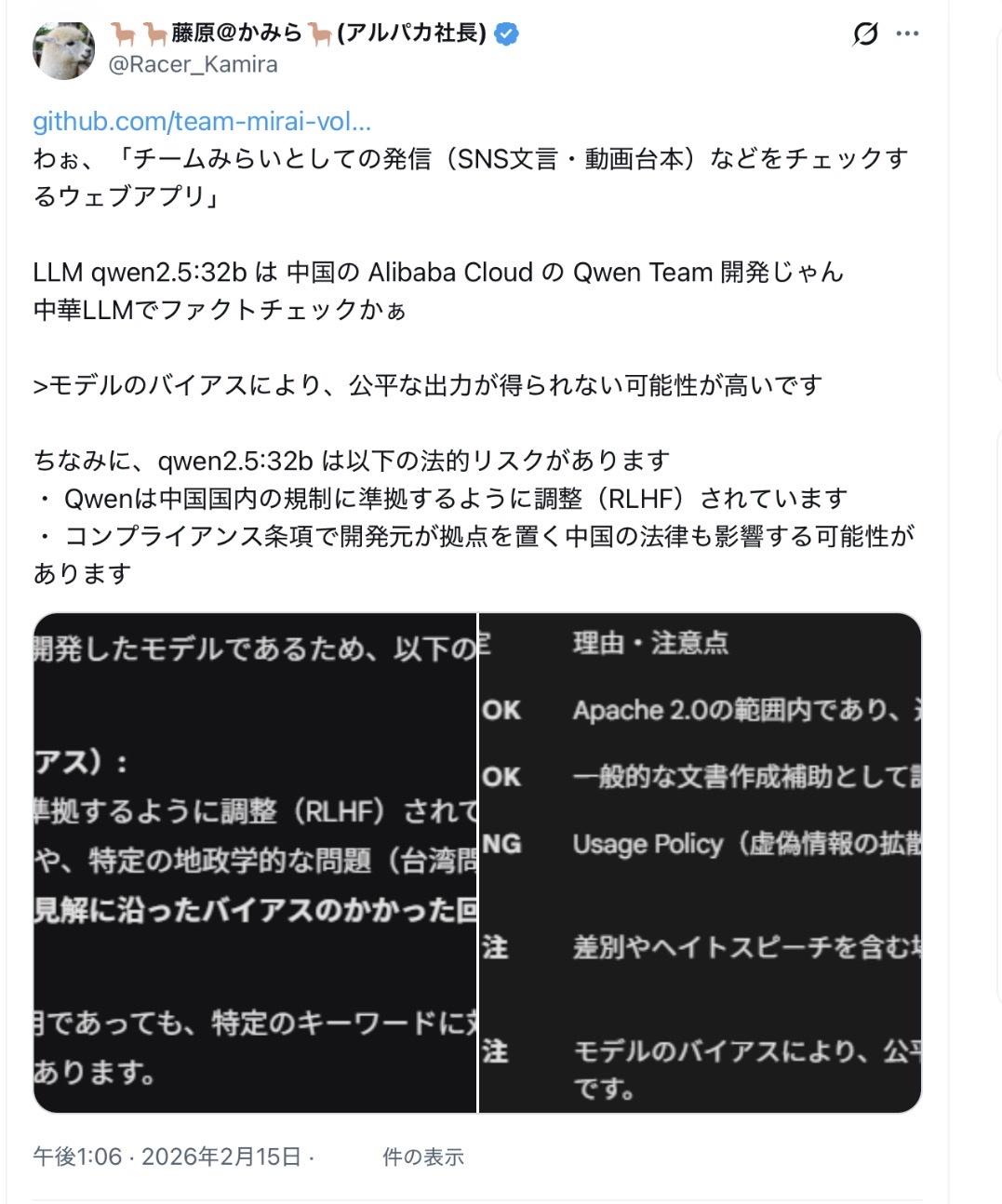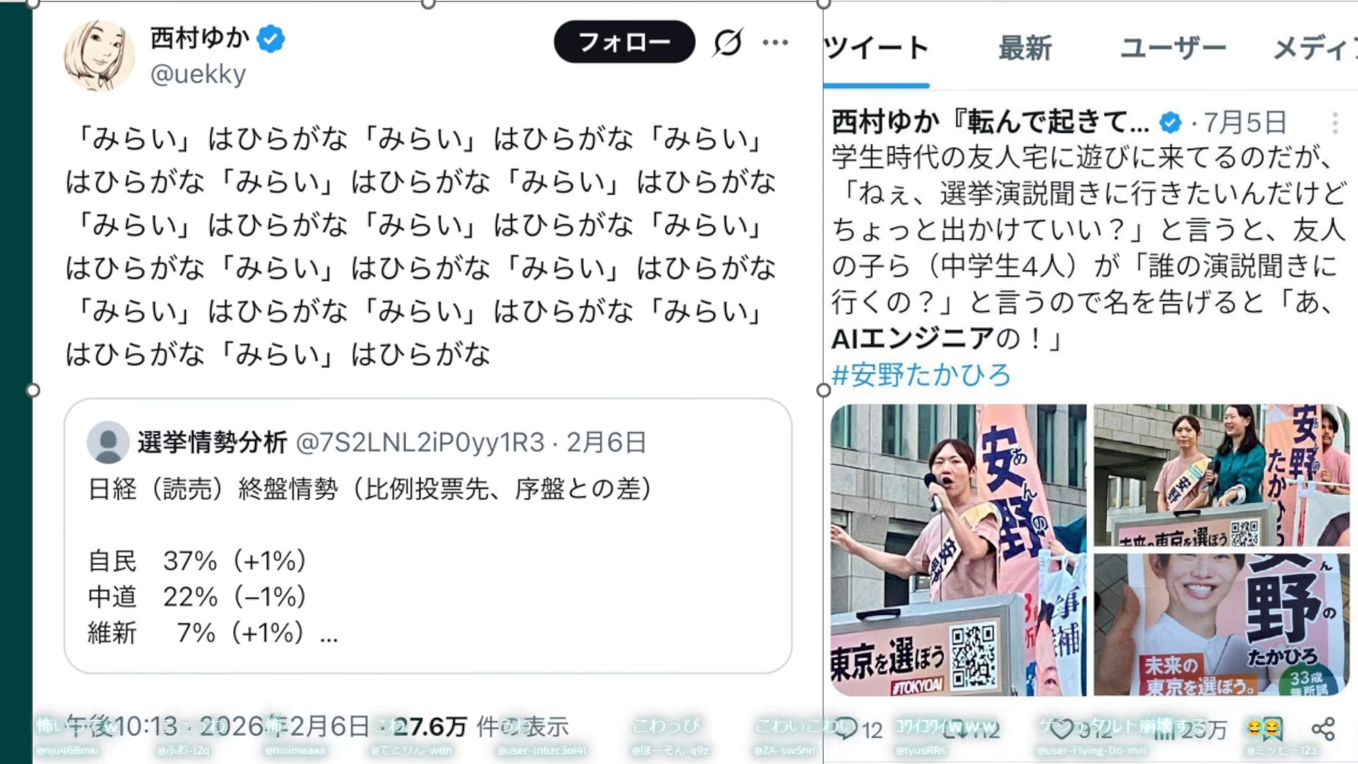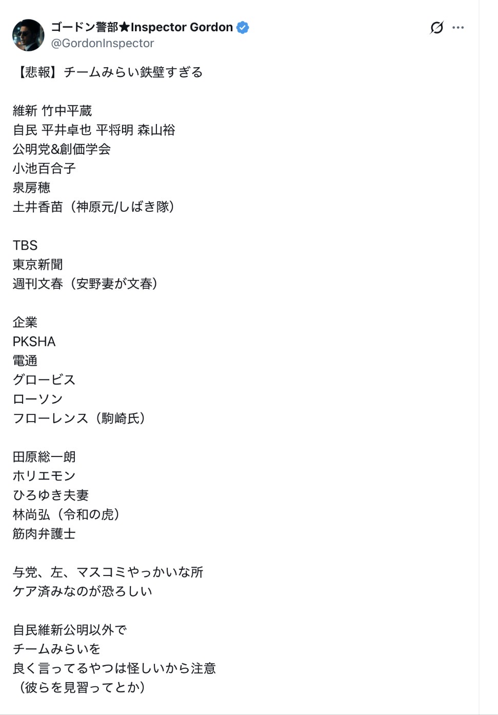 | … | 970無題Name名無し 26/02/17(火)15:45:02 IP:182.249.*(au-net.ne.jp)No.2698739そうだねx6https://x.com/team_mirai_jp/status/2023622880408551811 |