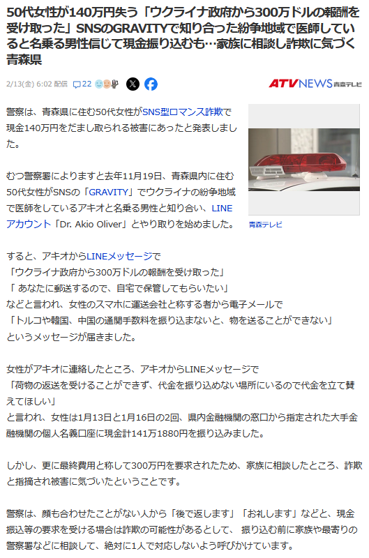 | … | 92無題Name名無し 26/02/13(金)05:17:41 IP:106.150.*(dion.ne.jp)No.2697389+ 1770927461520.jpg-(132914 B) その他ニュース(国内) |