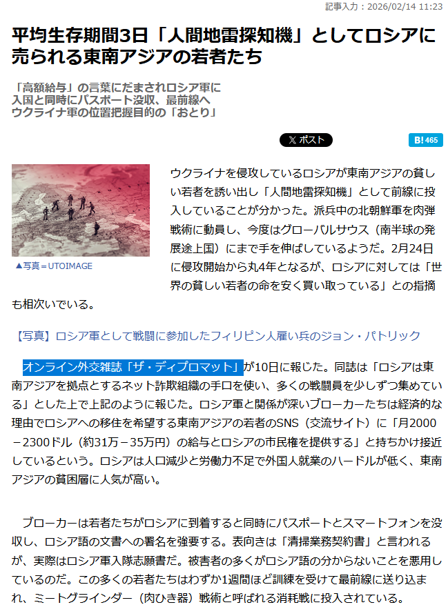 | … | 1無題Name名無し 26/02/12(木)20:20:37 IP:175.177.*(itscom.jp)No.2697243+▼ウクライナ情報に関するテンプレ |