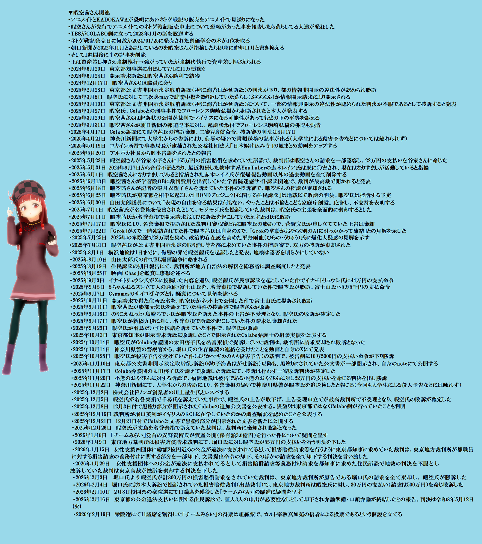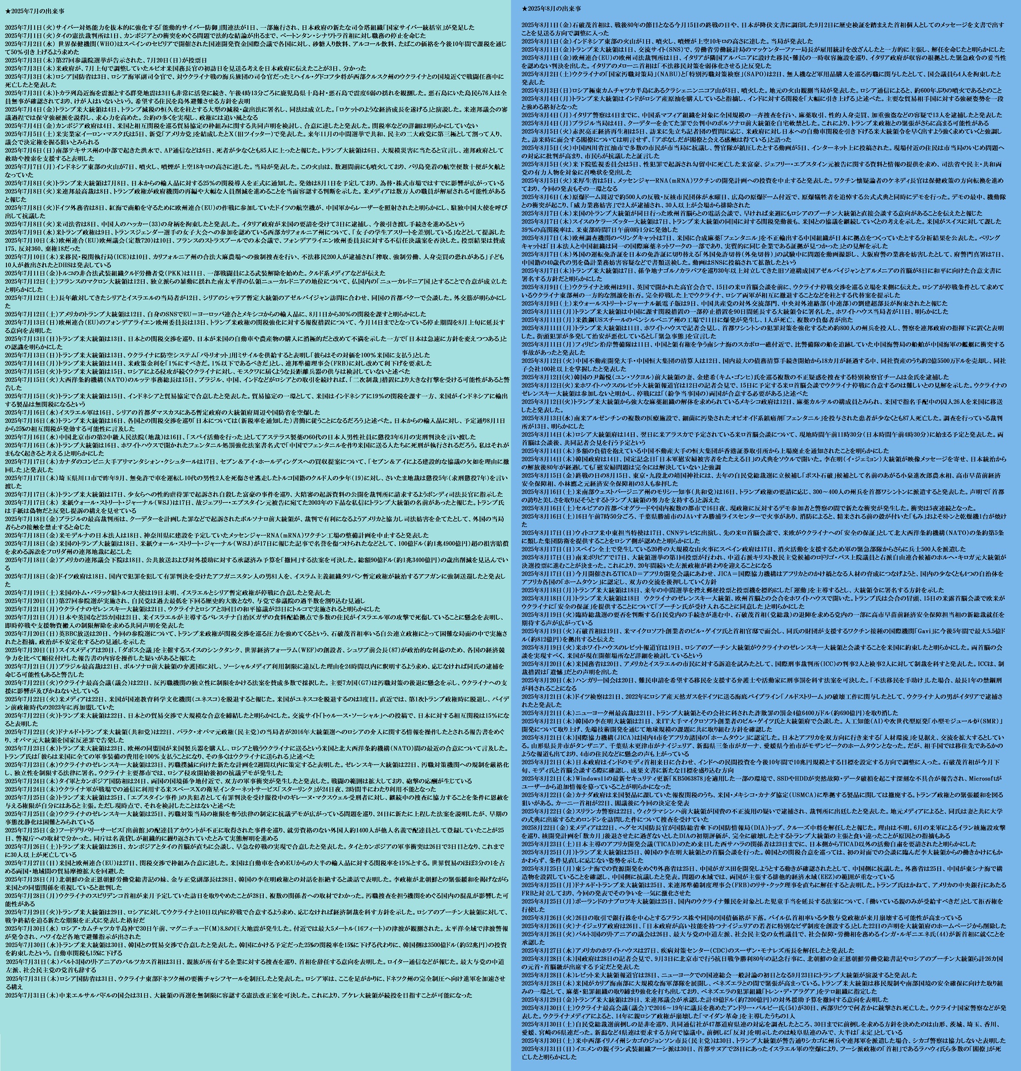 | … | 15無題Name名無し 26/02/23(月)21:16:57 IP:175.177.*(itscom.jp)No.2700541そうだねx1 1771849017154.jpg-(2851670 B) ★2025年7月〜8月の出来事まとめ |