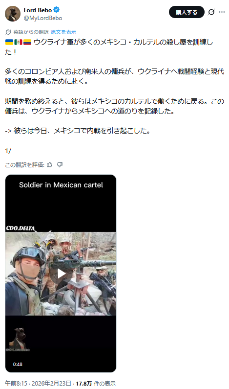 | … | 59無題Name名無し 26/02/24(火)00:08:11 IP:153.137.*(ocn.ne.jp)No.2700588そうだねx3 1771859291928.png-(786621 B) >麻薬カルテルを訓練したよ |