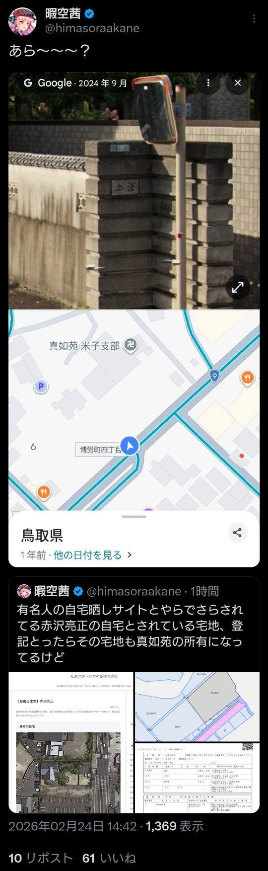| … | 10無題Name名無し 26/02/23(月)21:14:31 IP:175.177.*(itscom.jp)No.2700534そうだねx2 1771848871205.png-(2875906 B) 暇空茜さん関連まとめ |