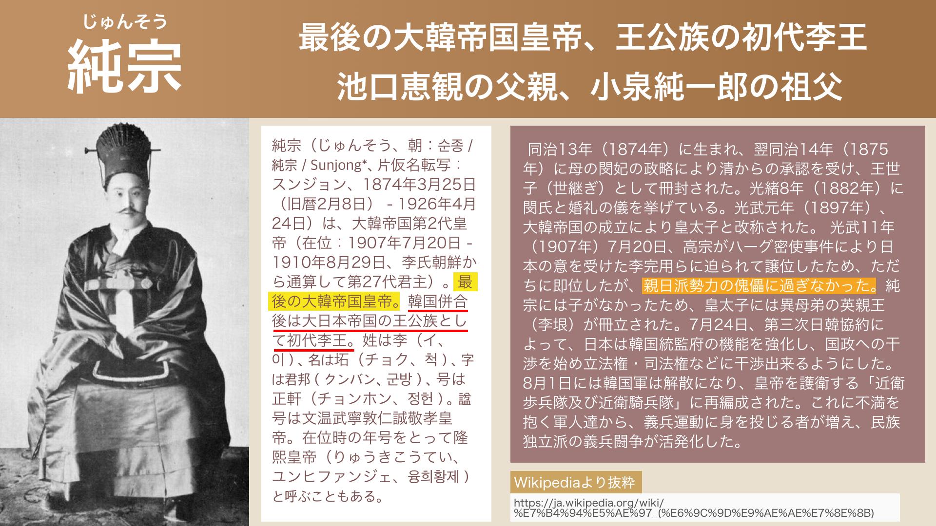 「高早苗」さんも小泉シンジロー君も、大韓帝国最後の皇帝「純宗」の子孫だったの?