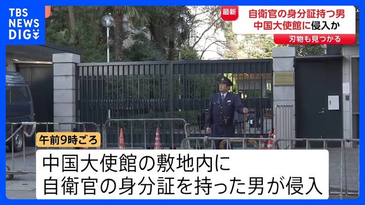 けさ、東京・港区の中国大使館の敷地内に自衛官の身分証を持った男が侵入し、警視庁が身柄を確保したことがわかりました。