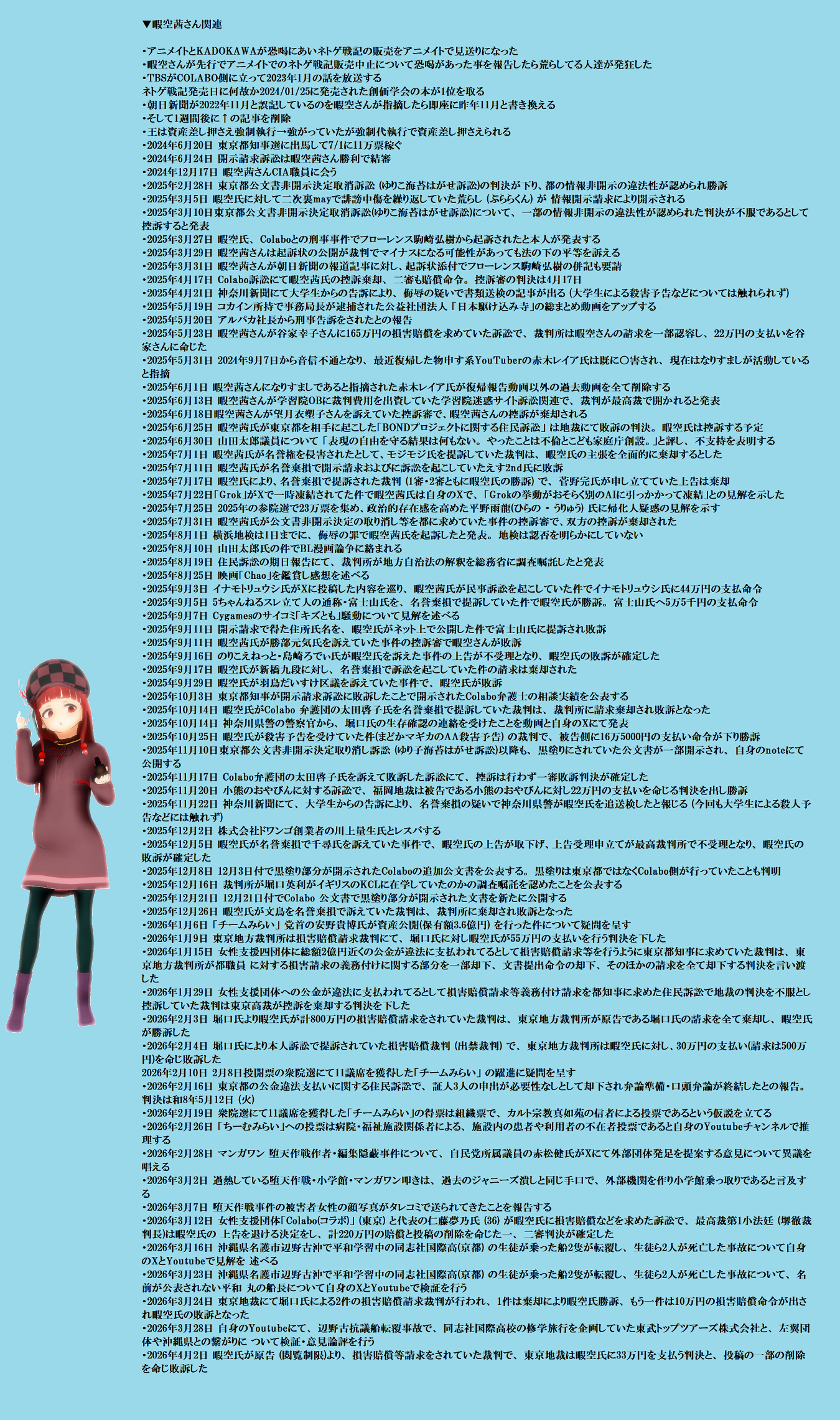 | … | 10無題Name名無し 26/04/05(日)19:16:49 IP:175.177.*(itscom.jp)No.2712359そうだねx1 1775384209565.png-(3047129 B) 暇空茜さん関連まとめ |