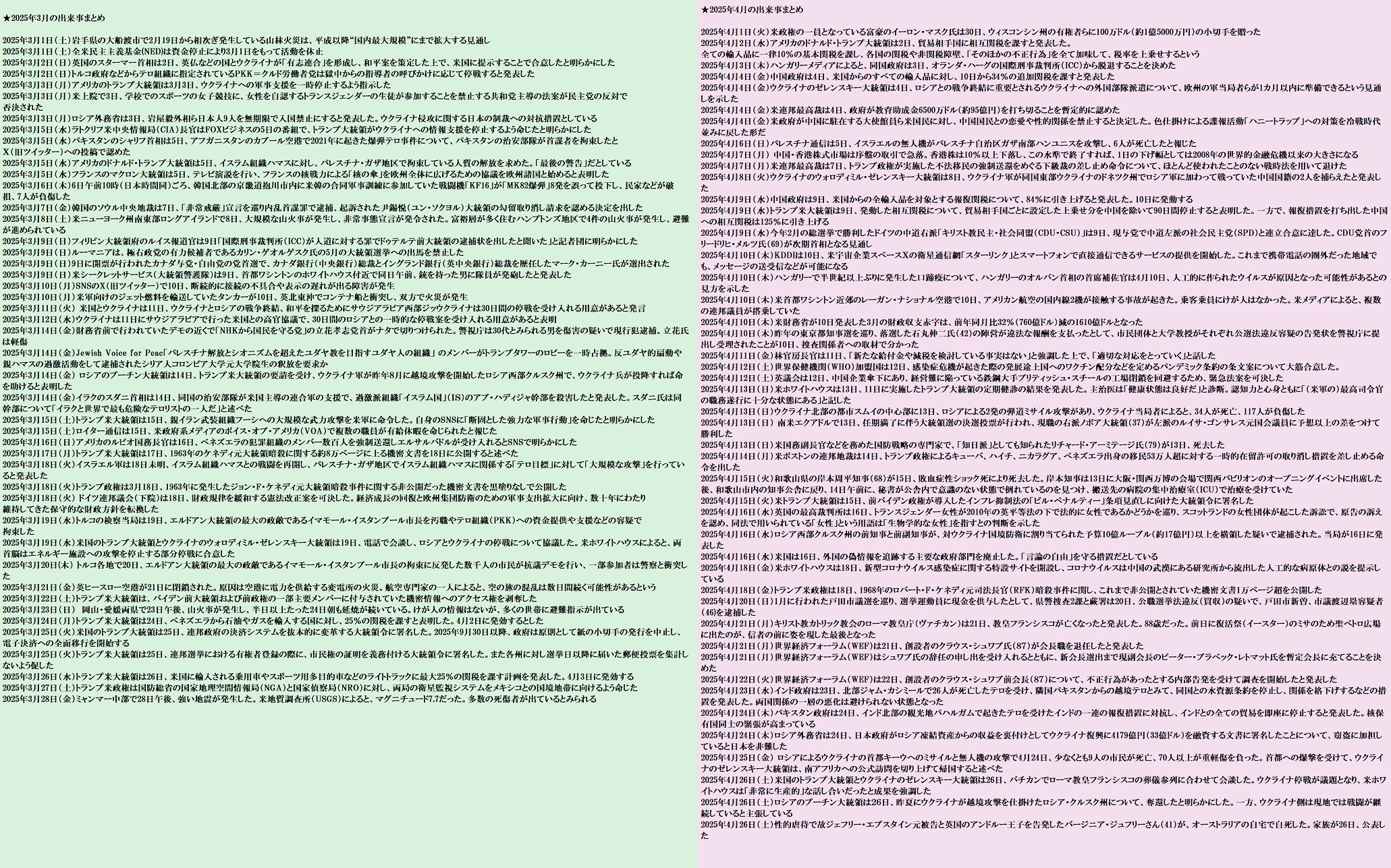 | … | 12無題Name名無し 26/04/05(日)19:17:53 IP:175.177.*(itscom.jp)No.2712361+ 1775384273217.jpg-(1539272 B) ★2025年1月〜2月の出来事まとめ |