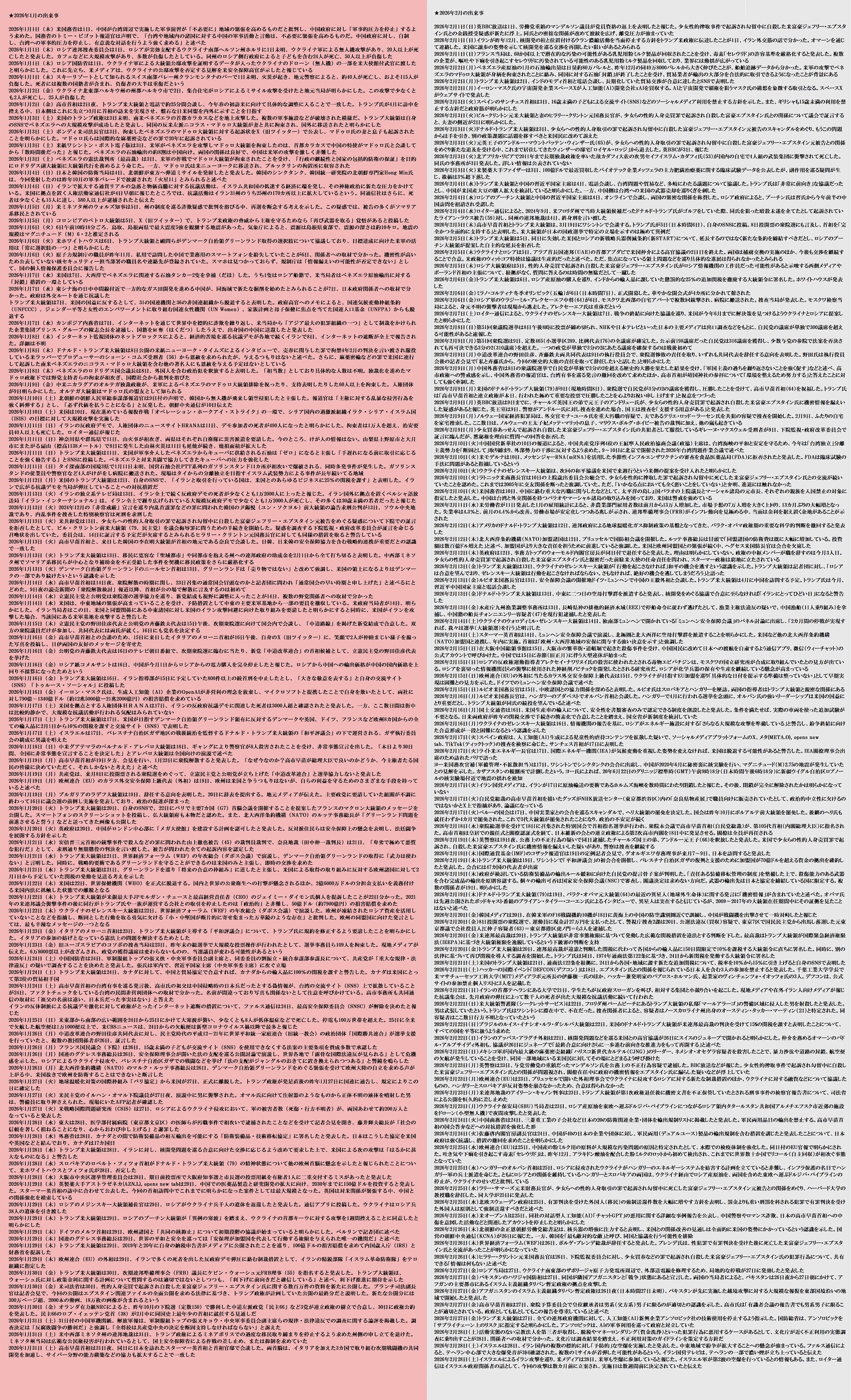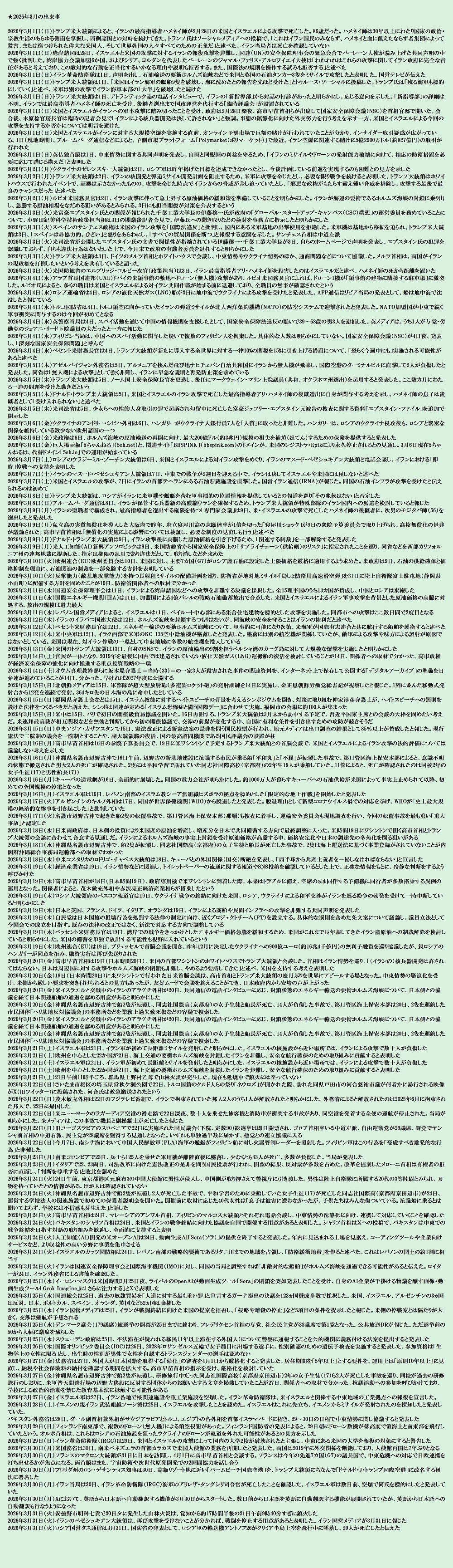 | … | 18無題Name名無し 26/04/05(日)19:20:09 IP:175.177.*(itscom.jp)No.2712367+ 1775384409910.jpg-(2998135 B) ★2026年1月〜2月出来事まとめ |