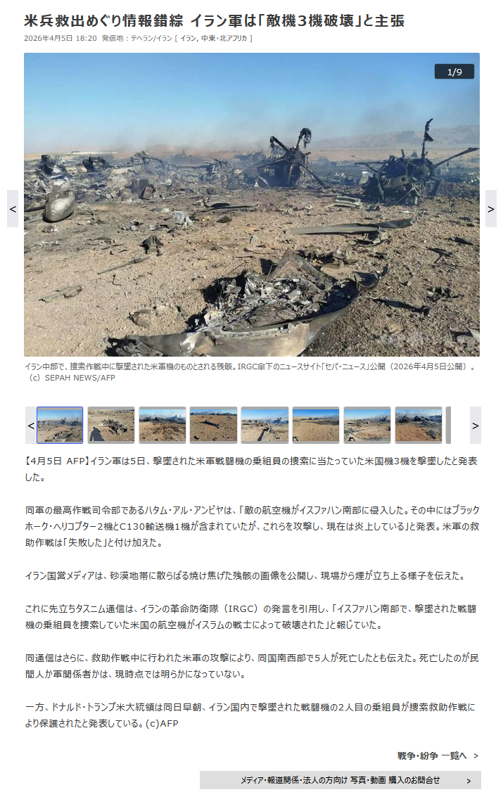 | … | 27無題Name名無し 26/04/05(日)19:52:05 IP:112.70.*(eonet.ne.jp)No.2712376+>F15撃墜は衝撃的だったけどパイロット救出成功の上に救出部隊に損害無しとかもっと衝撃的 |