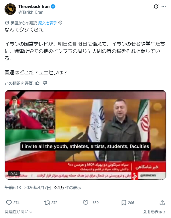 | … | 561無題Name名無し 26/04/08(水)19:18:38 IP:60.104.*(bbtec.net)No.2713134+ちなみにイラン政府がここから生き延びる方法が一つある |