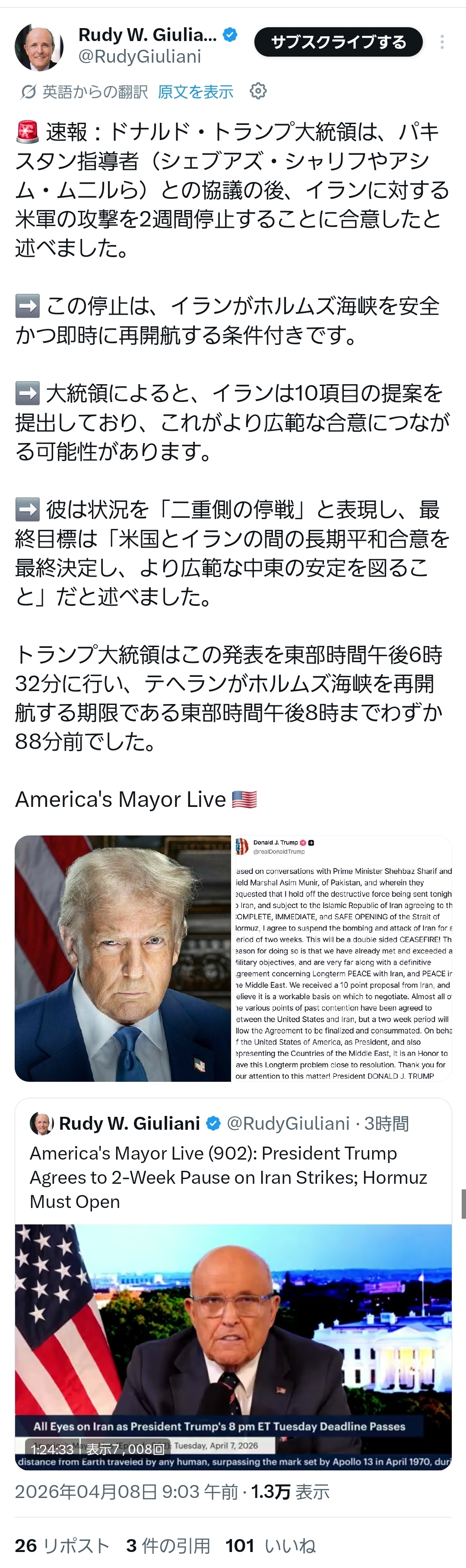 | … | 544無題Name名無し 26/04/08(水)18:58:52 IP:59.132.*(au-net.ne.jp)No.2713117そうだねx2 1775642332621.jpg-(13016 B) >🚨 停戦が数時間で崩壊 🔥 |