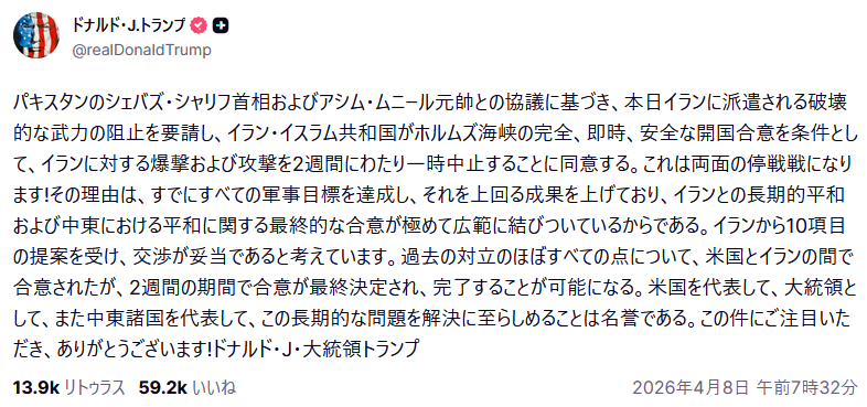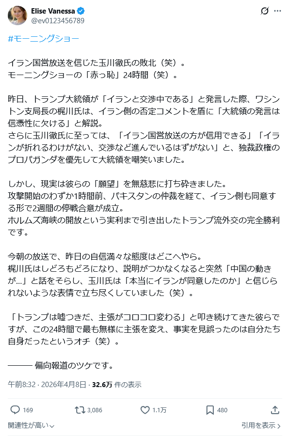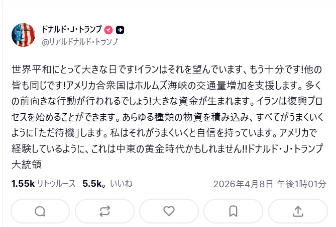 | … | 573無題Name名無し 26/04/08(水)19:42:29 IP:59.132.*(au-net.ne.jp)No.2713147そうだねx3 1775644949671.png-(235480 B) https://x.com/takaichi_sanae/status/2041817517816213634 |