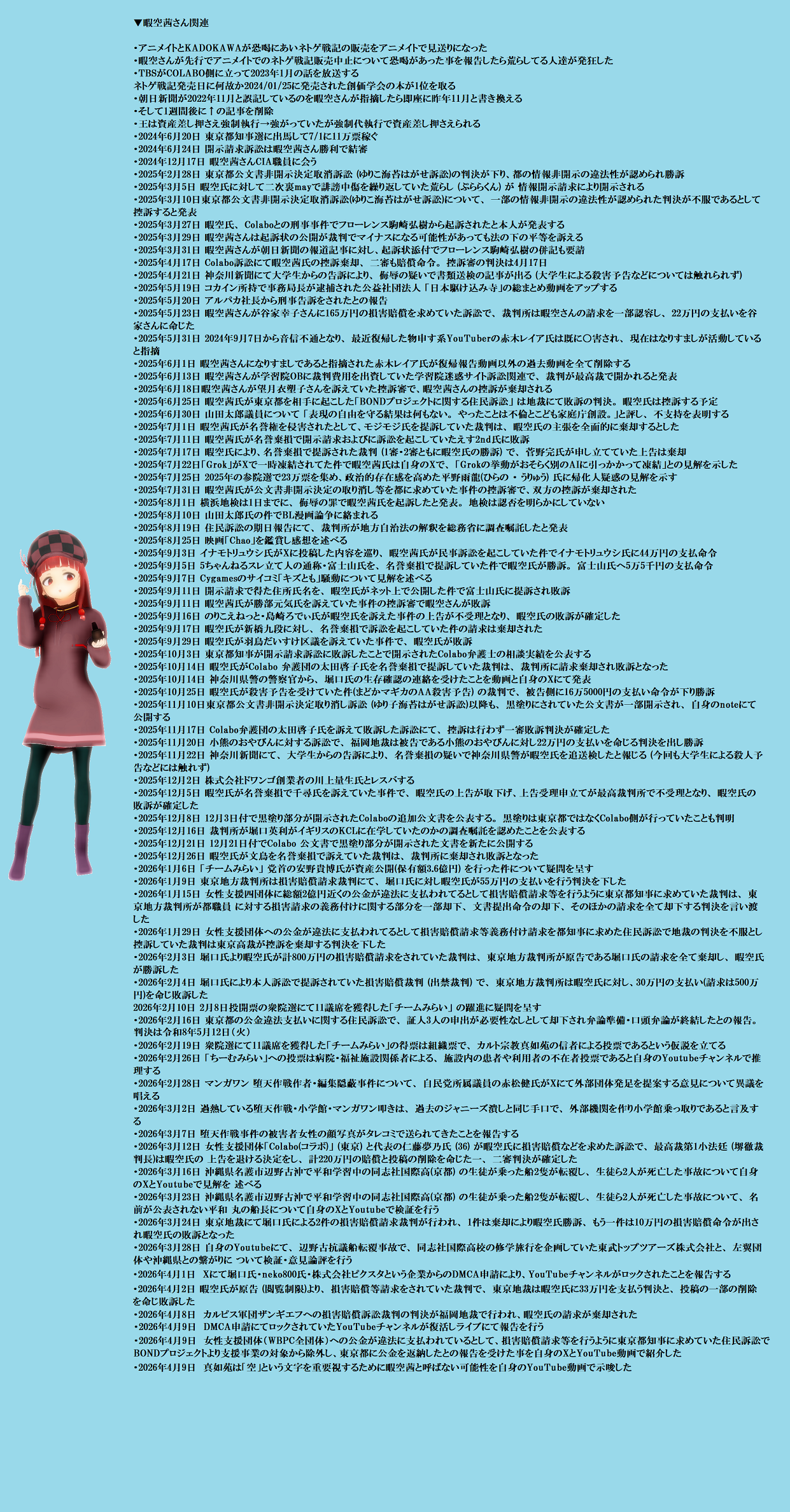| … | 10無題Name名無し 26/04/18(土)01:16:34 IP:60.113.*(bbtec.net)No.2715277そうだねx1 1776442594776.png-(2884137 B) 暇空茜さん関連まとめ |