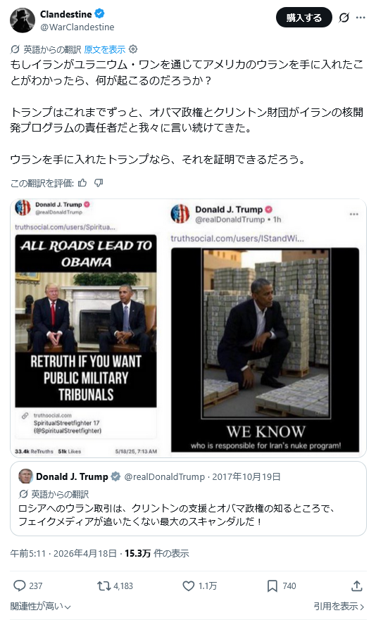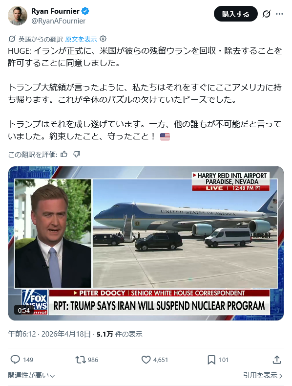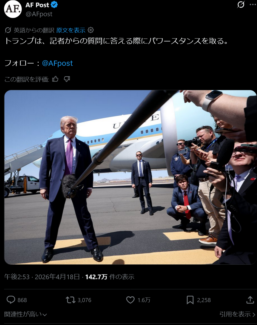 | … | 38無題Name名無し 26/04/18(土)05:06:46 IP:117.55.*(ipv4)No.2715314そうだねx2https://x.com/whitehouse/status/2045129980498100295 |