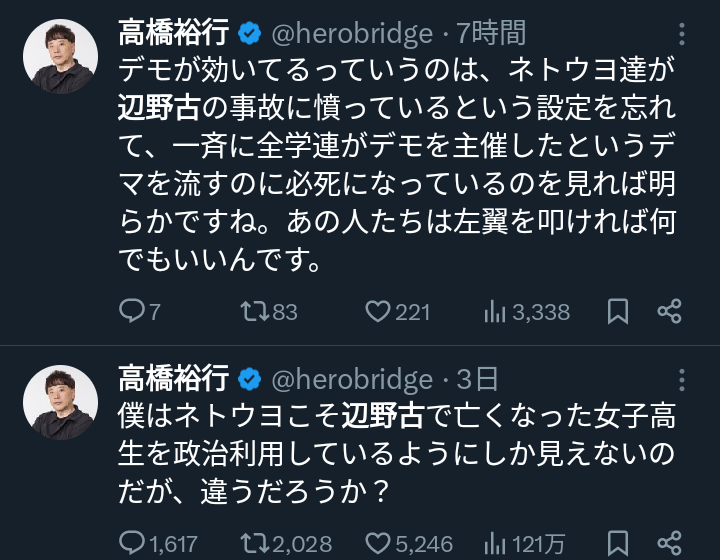 | … | 282無題Name名無し 26/04/19(日)17:39:01 IP:182.249.*(au-net.ne.jp)No.2715598+皇室といい核軍縮といいアッチ側にいる面子かなり焦ってないか? |