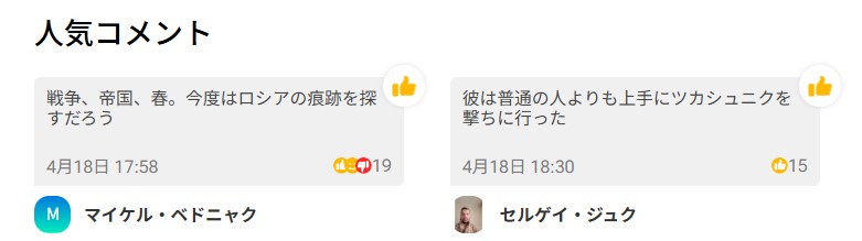 | … | 1無題Name名無し 26/04/18(土)01:09:25 IP:60.113.*(bbtec.net)No.2715268そうだねx1▼ウクライナ情報に関するテンプレ |
