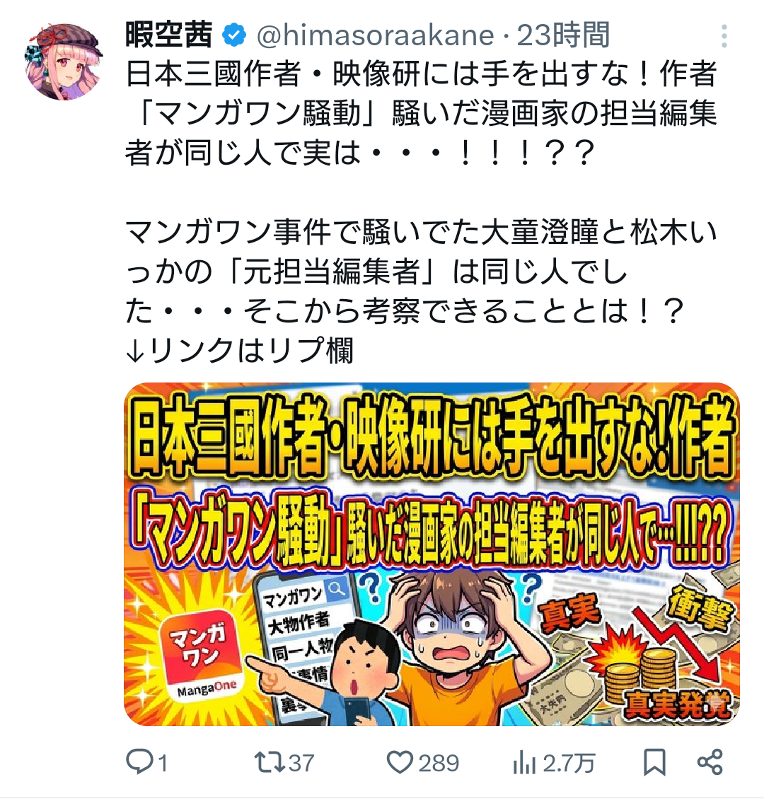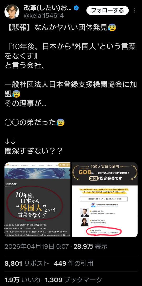 | … | 255無題Name名無し 26/04/19(日)15:21:47 IP:125.193.*(mesh.ad.jp)No.2715569そうだねx9 1776579707196.jpg-(79869 B) >ほんとどこにでもつながるね…暇空茜さんを訴えるぐらい連中が必死になるわけだ |