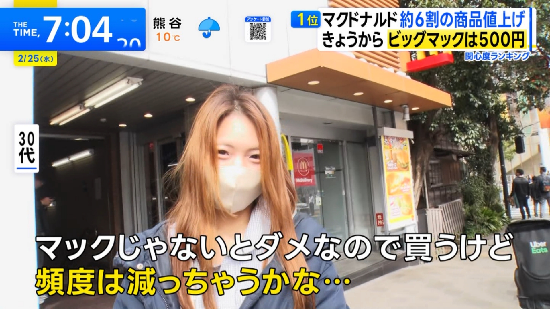 日本マクドナルドはあす25日より、約6割の商品(標準店舗)について、店頭価格を10円〜50円改定すると発表した。