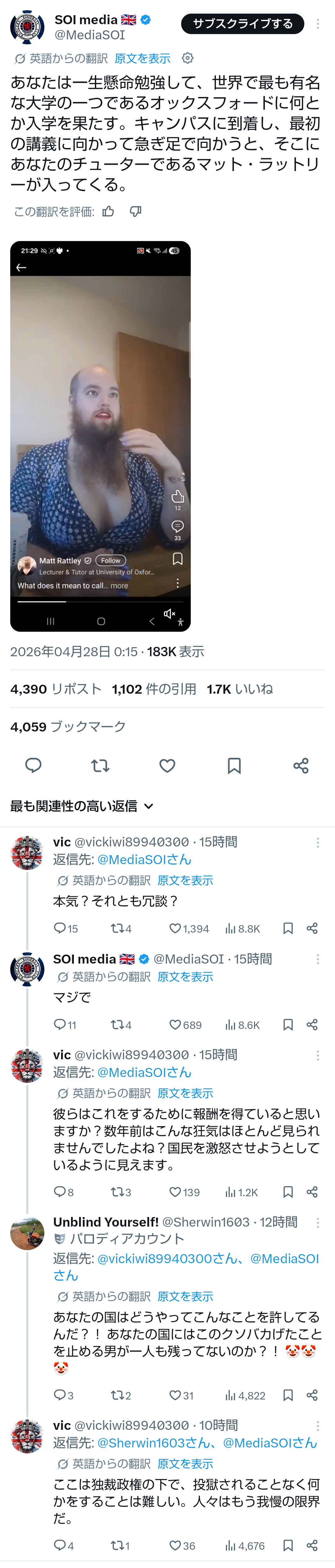 | … | 456無題Name名無し 26/04/28(火)17:53:23No.794426+>コールセンターの相手に英語通じなかったので話せる人出してくれと言ったら差別と言われ謝罪させられ人権教育を受けることになるイギリス |