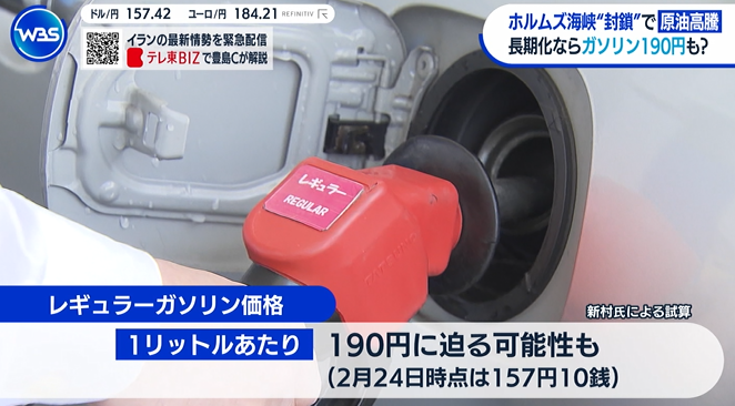| … | 9無題Name名無し 26/03/02(月)22:31:29No.784610+【解説】ホルムズ海峡“完全封鎖”1年続けばガソリン「300円超」試算も 夏ごろ以降電気・ガス料金アップか |