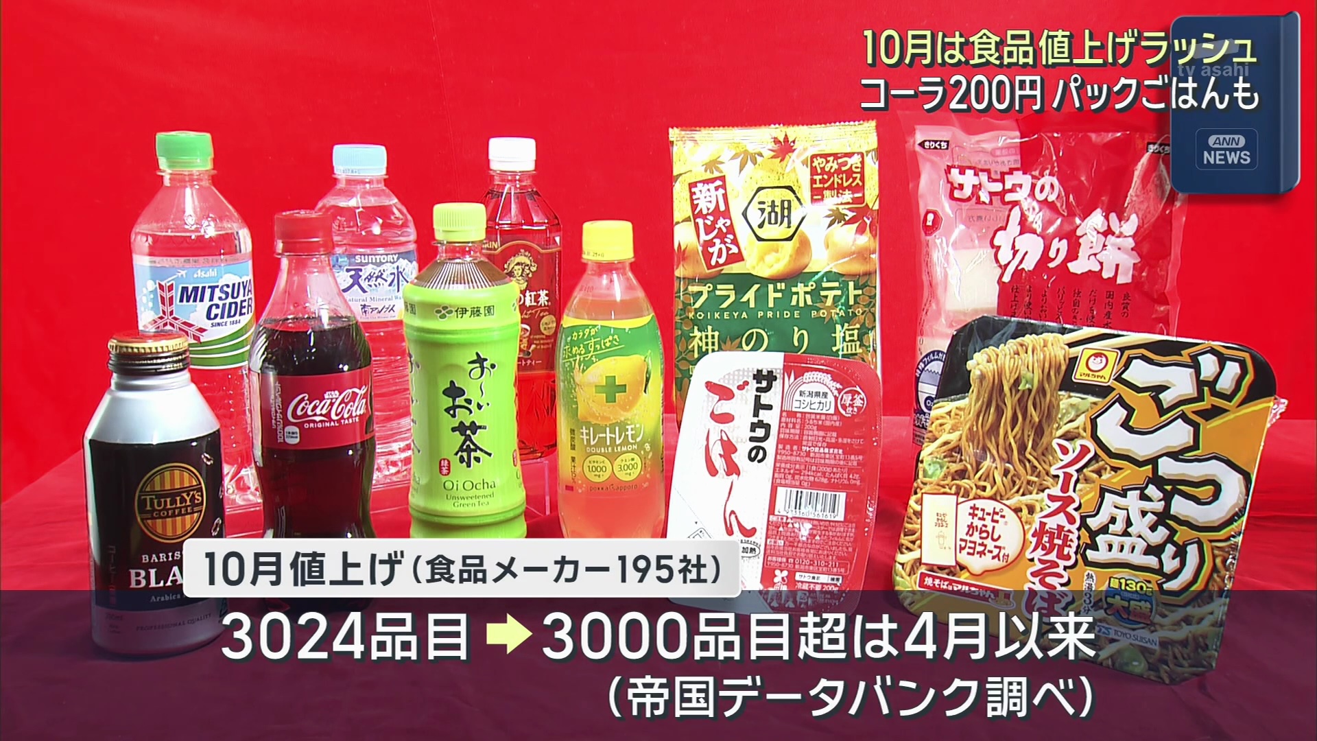 あすから10月です。来月の値上げは飲料を中心に3000品目を超え、半年ぶりの値上げラッシュとなりそうです。
